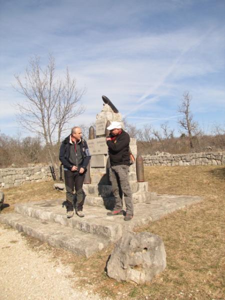 Za letošnji občni zbor smo se zbrali v Kostanjevici na Krasu. Velika večina se nas je zbrala že v jutranjih urah z namenom, da se podamo po Poti miru na Cerje. V prijetnem dokaj sončnem vremenu smo se odpravilo čez Kraške gmajne do Borojevičevega stola. Tu nas je pričakal lokalni turistični vodič Konrad. Ob stolu je Spomenik - kažipot, ki je bil postavljen na čast poveljniku VII. avstro-ogrskega korpusa nadvojvodu Jožefu, imel pa je tudi funkcijo smerokaza, saj označuje razdaljo do Lokvice in Kostanjevice. Postavili so ga pripadniki pehotnega polka št. 43 iz Karansebesa v Romuniji. Pripadniki polka so gradili tudi cesto, ki so jo poimenovali po komandantu VII. korpusa: » Erzherzog Joseph Strasse « (cesta nadvojvode Jožefa). Na strani, ki gleda proti cesti, je nekoč stala še ena napisna plošča, ki je danes izgubljena. Na zadnji strani je napis ERBAUT VOM K.u.K. IR 43 (zgradil 43. pehotni polk). Sestavni del spomenika so tudi granate, ki so postavljene na vseh vogalih in na vrhu spomenika. Borojevićev prestol (Cesarjev – Borojevićev kamniti stol) je dobil ime po poveljniku 5. avstro-ogrske armade Svetozarju Borojeviću von Bojna. Ob desni strani je vklesan priimek Pristan, ki je verjetno priimek tistega, ki je »stol« izklesal.