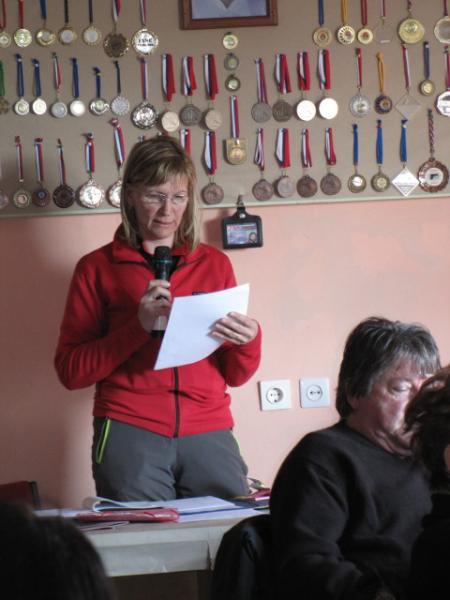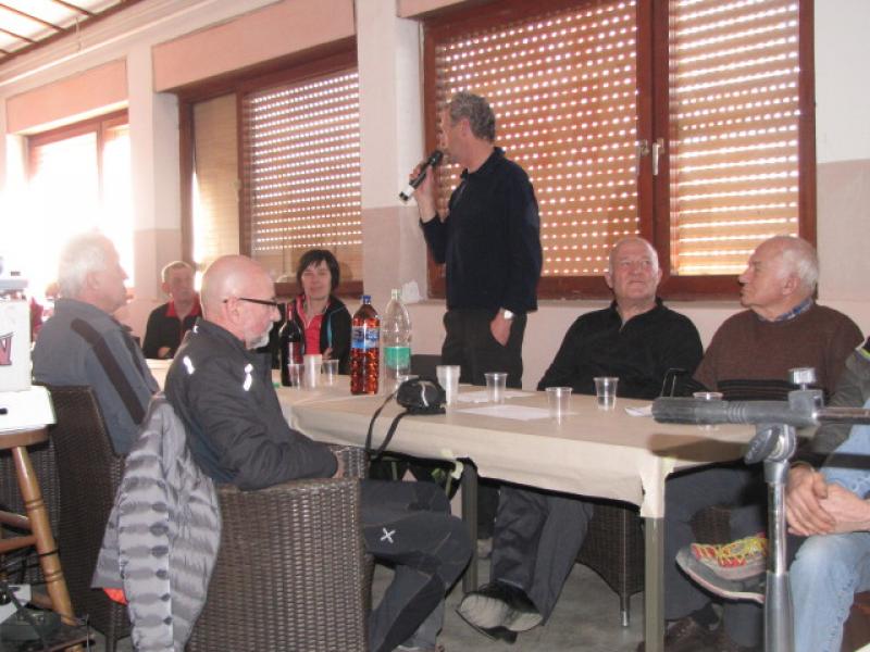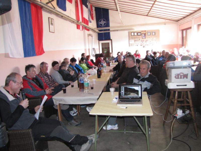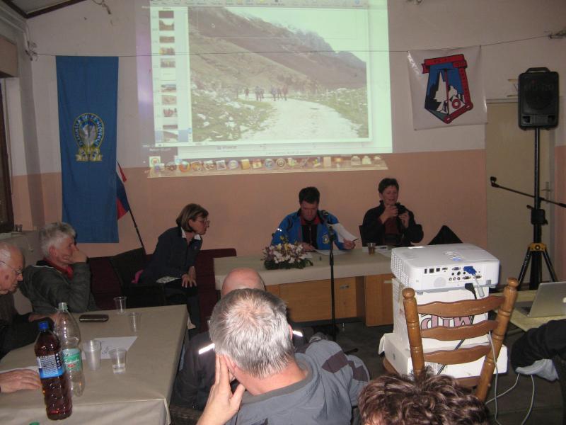 Uradni del zbora se je tako kot že nekaj let do sedaj pričel s projekcijo utrinkov na izletih v preteklem letu. Letošnje leto je bilo volilno in na zboru je bilo izvoljeno tudi novo vodstvo Planinske skupine. Predsednik je ostal Ivan Trampuž, blagajničarka je Anica Trampuž, tajnica Darinka Gaberščik, za vodnike skrbi Ingrid Peršolja, obveščanje po elektronski pošti Milan Božič, ostali člani pa so še: Božo Leban, Martina Karat, Martina Mozetič, Peter Kolec in Darij Hmeljak. Ker so z ukinitvijo Pošte poslovne enote Nova Gorica nastali problemi glede obveščanja po pošti, se zavzemamo, da bi bilo čim širše obveščanje prek elektronske pošte in prek spletne strani. Na letošnjem Občnem zboru smo imeli tudi kar lepo število slavljencev, katerim so bila podeljena priznanja za njihovo dolgoletno aktivno delovanje v skupini. Prejemniki slik, katerih avtorji so udeleženci slikarske kolonije na Vršiču so: