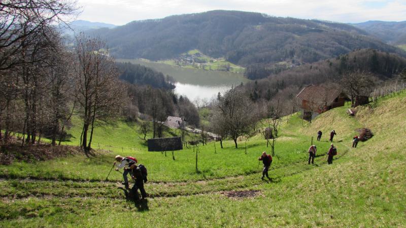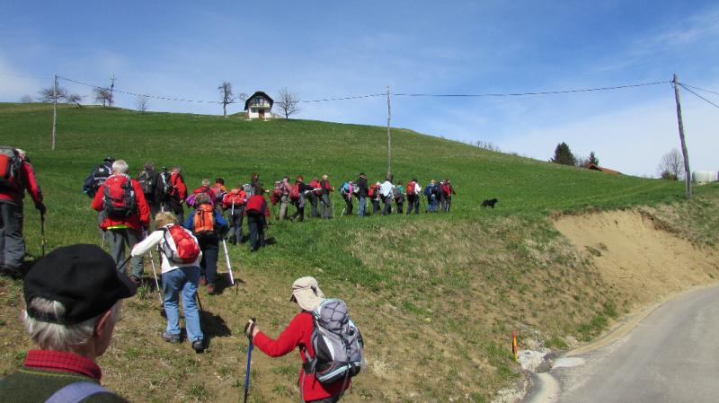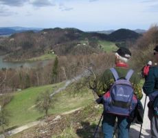 V rano svetlo jutro smo se zbrali planinci PD Pošte in Telekoma Ljubljana na Glavni avtobusni postaji Ljubljana z namenom, da prehodimo Pot s klopce na klopco, ki poteka okoli Slivniškega jezera. Z avtobusom smo se odpeljali v Domžale po Meto in Danila. V Šentjurju pri Celju so se nam pridružili še štirje planinci PD Pošte in Telekoma Celje. Pripeljali smo se v center vasi Gorica pri Slivnici. V gostilni smo zaužili jutranjo kavico, pridružil se nam je lokalni vodnik Matija Iskra iz Planinskega društva Slivnica pri Celju. Pozdravit nas je prišel tudi Dane Rinc, naš znanec iz nekdanjega PTT-ja. Tako zbrani, iz treh društev, smo pričeli naš pohod s klopce na klopco. Sredi vasi nas je, stoje nad gnezdom opazovala štorklja, mi pa seveda njo. Planinskemu društvu Slivnica pri Celju se je ideja za pot porodila leta 2007, v želji, da bi domačine spodbudili k rekreaciji, jim približali opaznejše točke okoli Gorice in jih povabili, da na njih tudi malo posedijo. Pot povezuje hribe Gaj, Gradišče, Peseke, Sveta Helena, Col in Turnče. Pot je lično označena, z informativnimi tablami, žigi in vpisnimi knjigami. Prehodili smo polovico poti, drugi del pa nas še čaka, verjetno v letu 2016. Blizu kraja Gorica pri Slivnici se na 84 ha površine razprostira Slivniško jezero, ali kozjansko morje, kot ga nekateri imenujejo. Dolžina jezera je 5 kilometrov, širina doseže pol kilometra, globina 14 m. Nastalo je leta 1976 z zajezitvijo dveh potokov. Del jezera je opredeljen kot drstišče rib. Naseljuje 119 vrst ptic in 32 vrst rib, rakov, piškurjev, žab ter školjk. Na pohodu smo prehodili 12 km in relativno višino 400 m. Povzpeli smo se na dve točki ali do dveh klopc. Na pohodu smo opazovali prebujanje pomladne narave, ki jo s svojim petjem in žvrgolenjem oznanjajo tudi ptice. Vrnili smo se na izhodiščno točko v vas Gorica pri Slivnici. Poslovili smo se od prijaznih domačinov, naših prijateljev iz Celja in po avtocesti odbrzeli z avtobusom v Ljubljano. V mesecu maju pa gremo k našim Brežiškim pobratimom, da skupaj z njimi preživimo lep planinski dan.