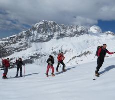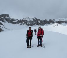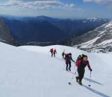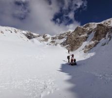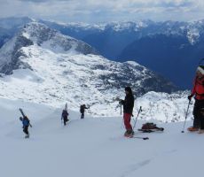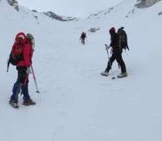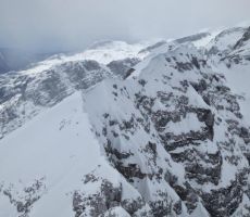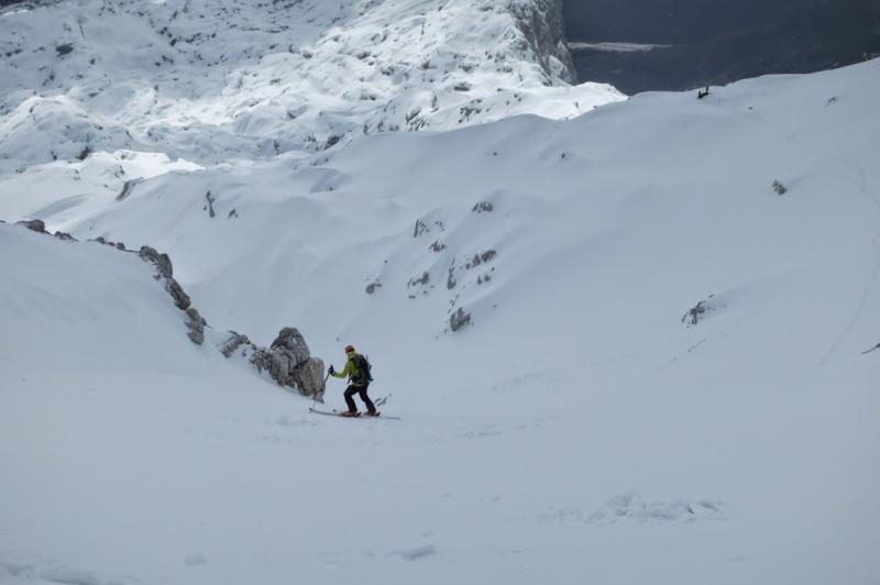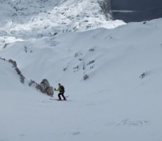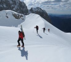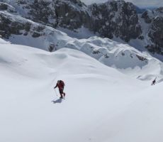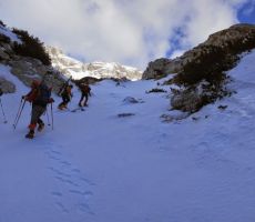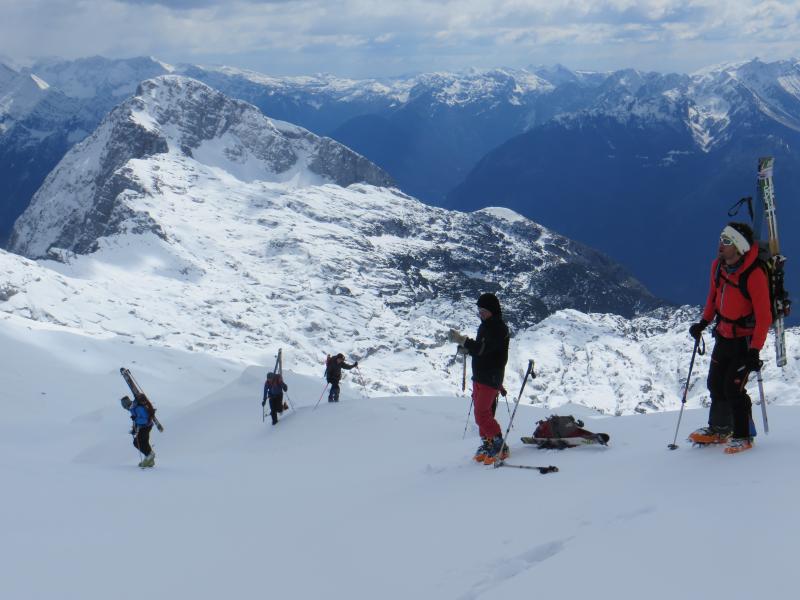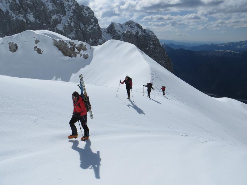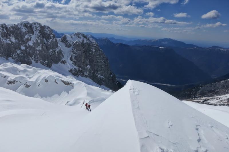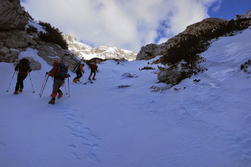 Pošiljam par fotk z vzpona na Hudi vršič 2344m-start pri »B« postaji. Sama tura je potekala v optimalnih razmerah; temp kar precej pod ničlo, posledično je bil sneg super za hojo. Za gor smo še imeli dokaj jasno in sončno z malo vetra, za dol se je pooblačilo in celo rahlo snežilo (ma tako, bolj za stavo) je do doline. Snežni jeziki segajo do cca 1500mnv in tam sta nas na sestopu počakala naša smučarja. Skratka še ena lepa tura v dobri družbi in lahko damo pohvalo Alešu za dobro izbiro cilja.