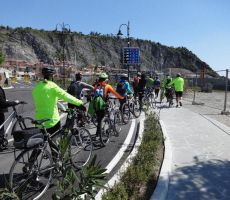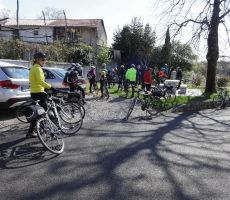 Že je bil skupinski start s kolesi po stari železniški trasi do Skopega, kjer smo si ogledali lokev (kal). Odkolovratili smo se v Krajno vas in do Pliskovice, kjer smo si ogledali Hostel Pliska in dobili kratke informacije o nastanku in delovanju hostla.