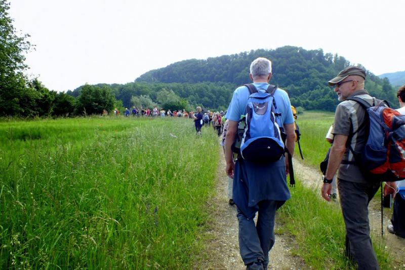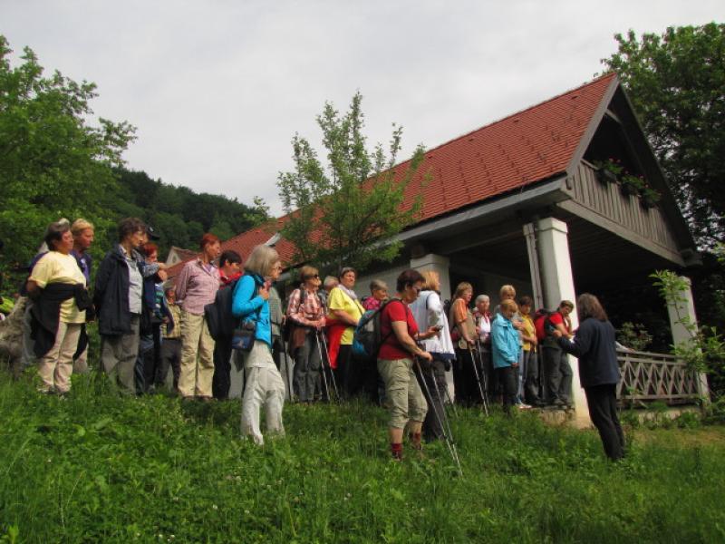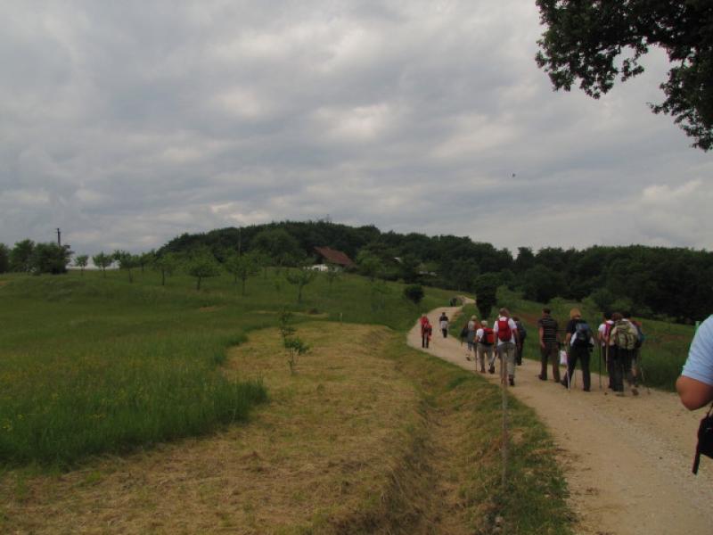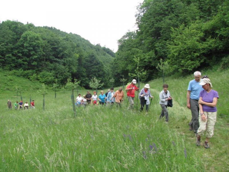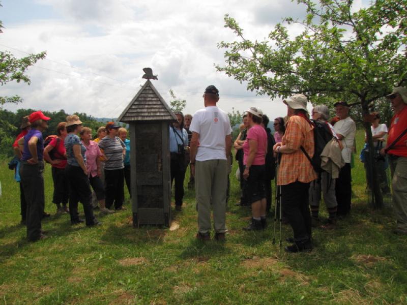 Ko smo se pričeli vzpenjati proti Gradišču, kjer ima park nasade starih sort sadja, smo se ob poti srečevali z bogato floro in različnimi vrstami dreves, ki jih v vsakdanjem hitenju skoraj ne opazimo. Posladkali pa smo se tudi z gozdnimi jagodami, ki so se nam tako mamljivo ponujala. Nekateri pa so izkoristili in so med potjo nabrali še cvetove bezga za domačo lekarno. Dušanu pa ni ušla nobena žuželka, ki se je pasla na cvetovih. Ko smo se že malo povzpeli nad Podsredo, so se nam odprli razgledi na okoliške vrhove, pa na grad Podsreda, ki tudi nosi svojo zgodbo. Na drugi strani pa se z gradom spogledujejo Stare Svete gore, na katero vodi tudi križev pot.