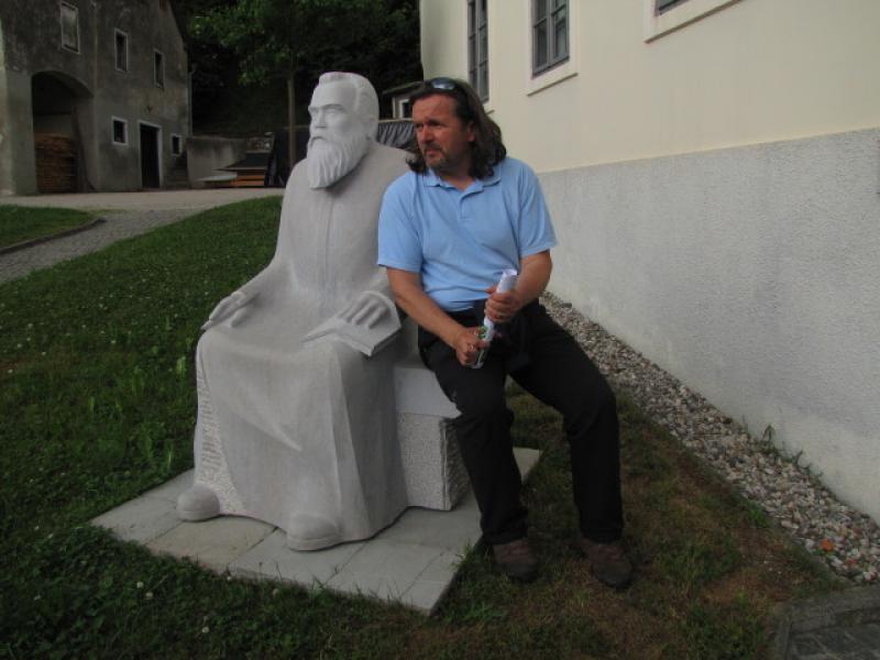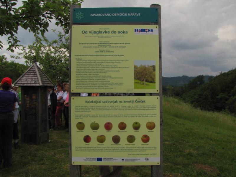 Tako smo le prispeli do želenega cilja, do opuščene kmetije Čerček, ki jo je odkupil Kozjanski park. Tu do posadili stare sorte jablan in hrušk in ustvarili gensko banko za več kot 100 različnih starih vrst jablan in za več kot 50 različnih vrst starih hrušk . Poskrbeli so tudi za opraševalce, saj so napravili hotel za žuželke, pa tudi pikapolonicam, ki se prehranjujejo z ušmi, so napravili domovanje. Travnike pa krasi množica različnih cvetic, nekatere za bile za naše oči prvič videne. Po temeljiti Dušanovi razlagi in podrobnem raziskovanju, smo se vrnili nazaj v Podsredo, kjer smo si v Aškerčevi hiši ogledali še zbirko mineralov, v prostorih TIC-a pa smo si ogledali še nekaj razstavnih primerov hroščev, ki jih v naravi največkrat sploh ne opazimo. Pred slovesom od našega vodiča smo si ogledali še sramotilni steber, po katerem je Podsreda poznana tudi v širši okolici. Nekateri so se celo preizkusili, kako zgleda, če te priklenejo nanj.