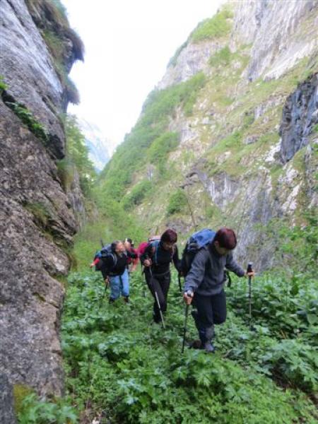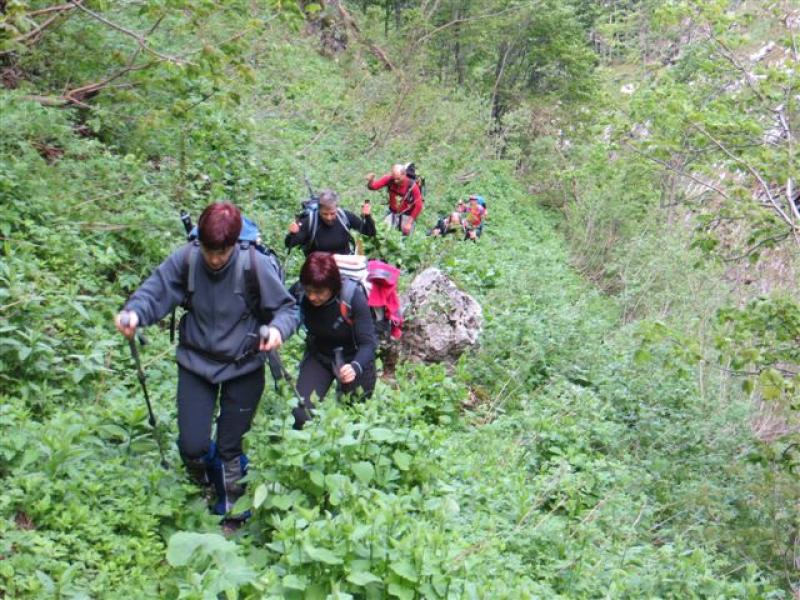 Iz Solkana smo se pripeljali do šolskega centra v Bavšici. Od tu dalje peš do planine Bukovnik in nato pod strmim ostenjem Pihavcev prek Doliča do sedla Vrh Osojnika. To smo opazovali vrhove, ki so se zasneženi skrivali v skrivnostne megle. Ker naše stopinje niso bile najbolj varne (tako z derezo kot brez) smo se odločili, da gremo na sedlo med Špičico in Nizkim vrhom. Od tu smo se spustili ponovno na sedlo pod Pihavci. Renato nas je nato vodil po kozji stezici, ki nas je varno popeljala v dolino Bala in nato do našega izhodišča.
