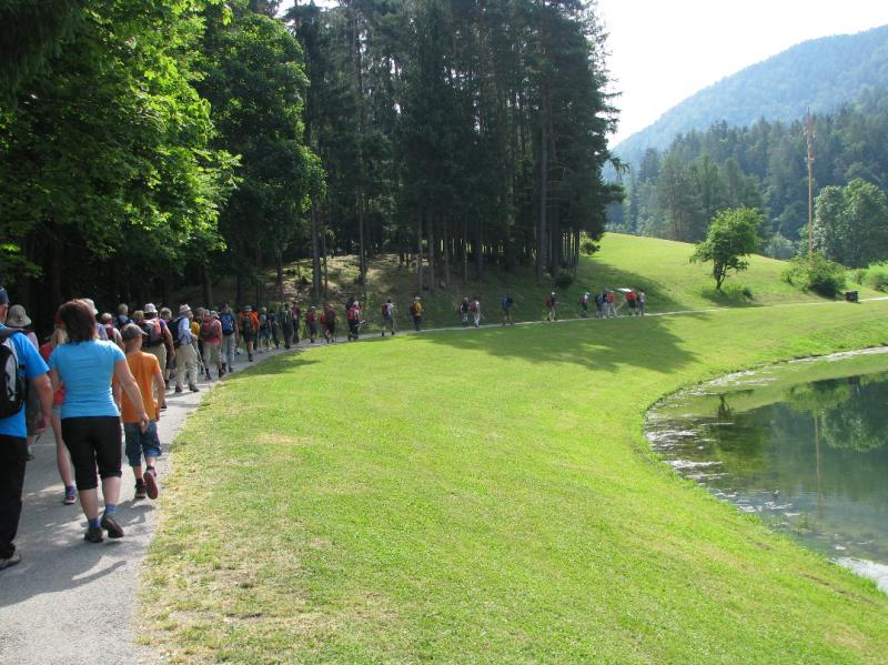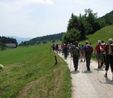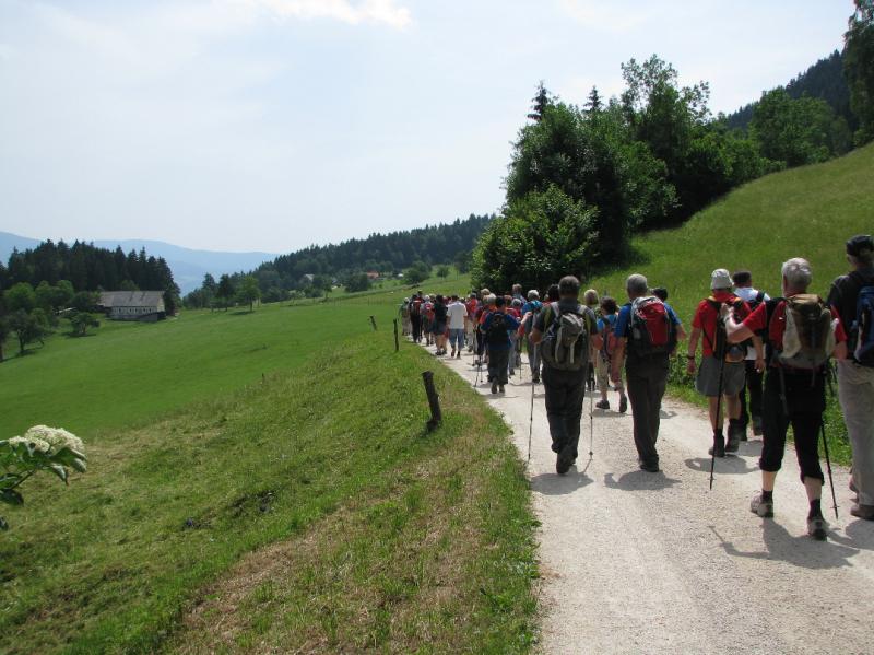 HOJA: Med 9. in 10. uro smo se odpravili mimo jezera po makadamski cesti skozi gozd po poti, ki vseskozi poteka v prijetnem zavetju koroških gozdov. V nadaljevanju se pot malo dvigne in nas pripelje iz gozda, kjer se odpre razgled proti Košenjaku na severu in vse do Pohorja na vzhodu. Pri kmetiji Šuler smo zavili desno proti Turistični kmetiji Ravnjak, prečkali dvorišče in že po dobrih petih minutah prispeli do Poštarskega doma pod Plešivcem. Celotno pot smo z lahko hojo prehodili v uri in pol.