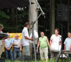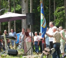 V imenu nekdanjih graditeljev Poštarskega doma pod Plešivcem je spregovoril Franc Pačnik in opisal prizadevno delo graditeljev tega objekta pred 60 leti.