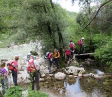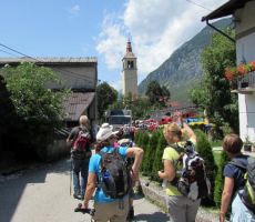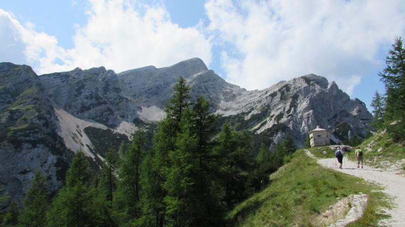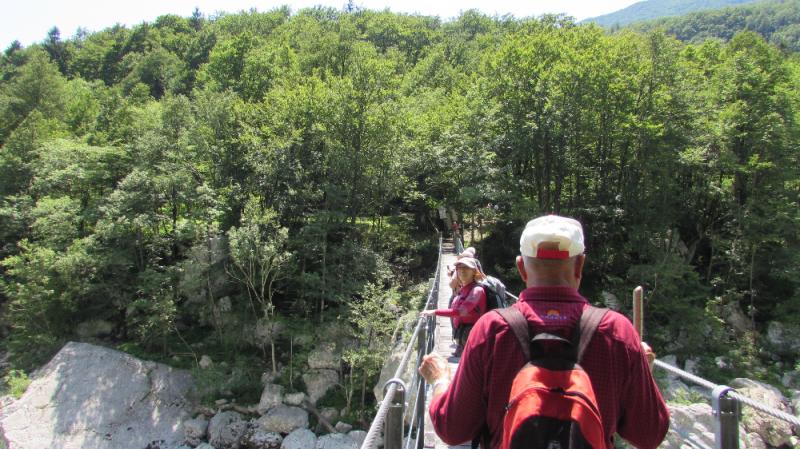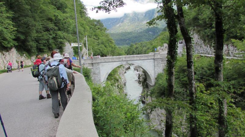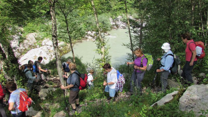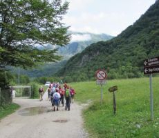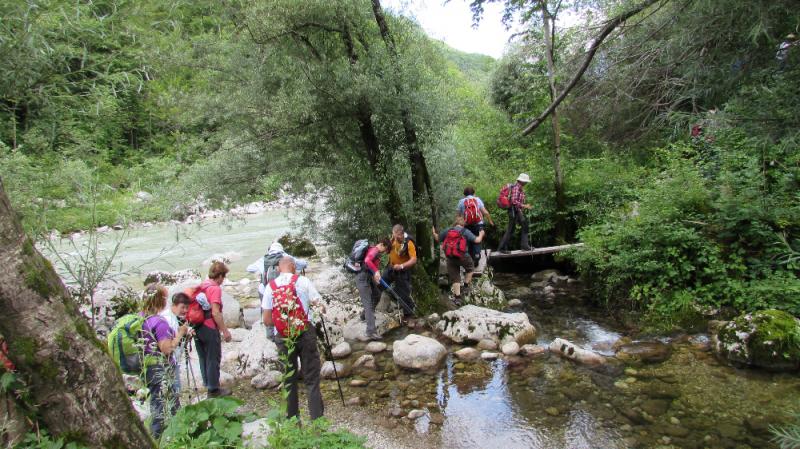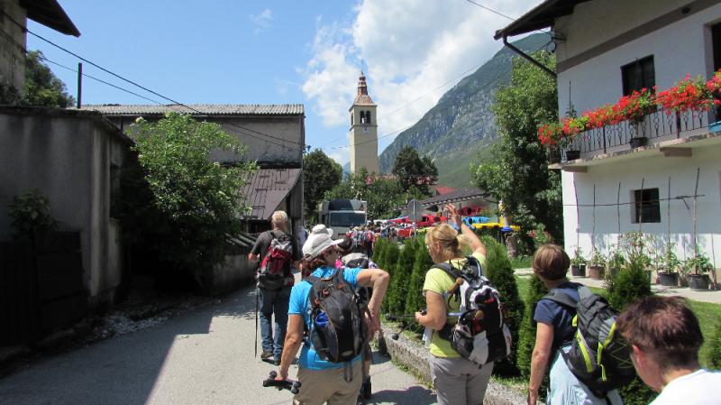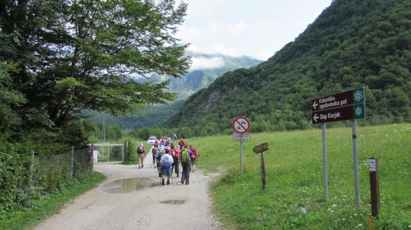 V četrtek 9. julija 2015, ob 7. uri zjutraj, v Ljubljani, so na nebu temni oblaki in rahlo dežuje. Seniorji Planinskega društva Pošte in Telekoma Ljubljana se zberemo na glavni avtobusni postaji pri št. 29, kjer že čaka avtobus LPP. Vseh 45 nas je pravočasno v avtobusu. Vodnik Boris napove odhod, šofer Jože objame volan in pritisne na pedal, avtobus zapusti postajališče. Vožnjo nadaljujemo po Tivolski, Tržaški, na avtocesto za Primorsko. Vozimo mimo Vrhnike. Temni oblaki nad nami hitro potujejo, preneha deževati. Vozimo mimo Postojne, oblaki niso več temni, nebo postaja svetlejše. Vozimo po hitri cesti skozi Vipavsko dolino proti Novi Gorici. Zadnji oblaki na nebu hitijo svojo pot. Iz avtobusa si ogledujemo lepo primorsko pokrajino, vso v zelenju, z značilnimi primorskimi vasmi in zaselki. Že smo v Novi Gorici, hitimo mimo gore Sabotin, v daljavi zagledamo cerkev Svete gore in samostan na vrhu. Vožnjo nadaljujemo ob reki Soči, mimo Tolmina.