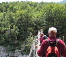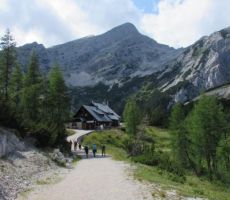 Po gozdni poti se dvignemo za cca. 400 m in se zopet spustimo k Soči, preko visečega mostu prečkamo reko ter po kolovozni poti prispemo v vas Trnovo, kjer vstopimo v naš avtobus. Po dolini Trente se mimo Kugyjevega spomenika odpeljemo na Vršič (1611 m). Zopet zapustimo avtobus in se podamo peš do našega, 15 minut oddaljenega Poštarskega doma, ki kraljuje na najvišji točki Vršiča (1688 m).