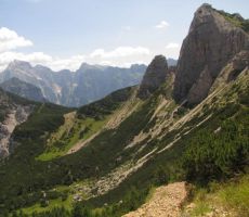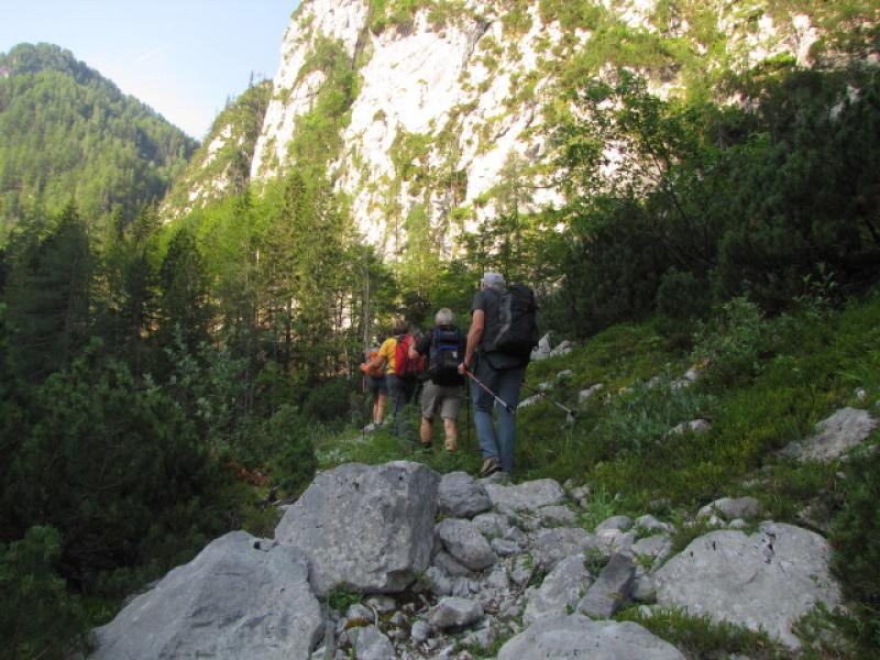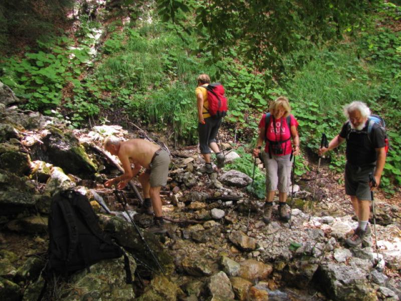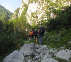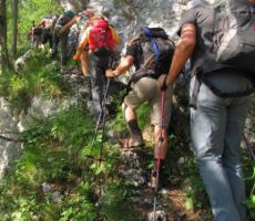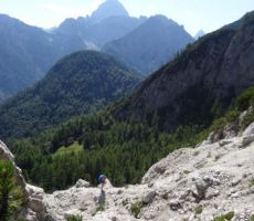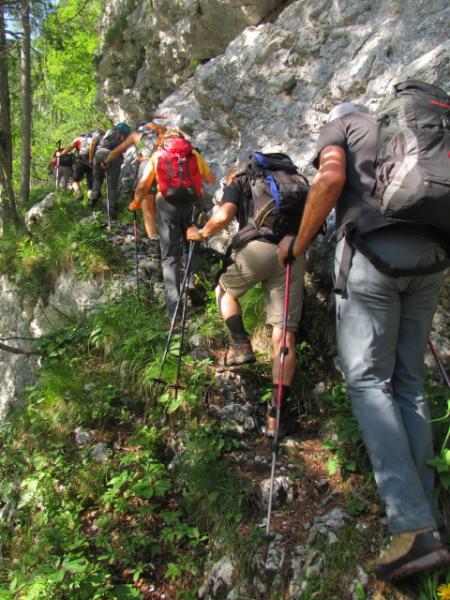 V toplem nedeljskem jutru smo se z avtomobili zapeljali preko Predela proti Rablju, kjer so se že v soncu bleščale Rabeljske špice. Razkazovale so se v vsej svoji lepoti, le izbrancem pa je dano, da lahko stopijo na njihove vrhove. Jekleni konjički so nas peljali naprej proti vasici Plezzut, kjer se odcepi ozka in vijugasta cesta proti Rutte Picollo, ki se nahaja pred vstopom v dolino Rmšendol. Prav na vstopu v divjo, malo obiskano dolino smo parkirali naše jeklene konjičke. Pred nami se je odprla široka dolina, ki se zapira z vrhovi Skala, Mala Ruša, Vršič pri Rablju, Veliki Grintavec. Na levi nas pozdravi Kopa ali Poldnik, ki je iz Remšendola težko dostopna gora, pa Bikovnik, na desni strani pa se med neštetimi macesni sramežljivo kaže 1845m visok Šober in dobrih 60m višje Rabeljske špice, ki s te strani sploh ne kažejo take mogočnosti, kot na zahodni strani. Po dokaj lagodni in lepo speljani makadamski cesti v veseli družbi prispemo do odcepa, ki nas pelje skozi gozd do opuščene planine Kolja jama. Dan je bil vroč in soparen, zato smo si z veseljem privoščili krajši počitek. Tu se je naša skupina razdelila. Del udeležencev se je odpravil proti Rabeljskim špicam s željo, da stopijo vsaj na enega izmed petih vrhov, ostali pa smo se odpravili po markirani poti do Šobra in naprej proti Vraški škrbini. Hodili smo po poti, ki je v preteklosti služila kot povezovalna pot med Rabljem in Rmšendolom, danes pa služi le redkim obiskovalcem in morda pastirjem, ki imajo svoje ovce na pašnikih v zatrepu doline Remšendola. Z Vraške škrbine je tudi možen prehod na drugo Čez Stože na Mangartsko planino. Šober je najvišja točka ob tej poti, vzpetina, ki je tako skopa s prostorom, da dovoli na svoj vrh le manjši skupini. Z velikim veseljem smo izkoristili ta majhen košček in uživali v razgledih »za bogove«. Tudi druga polovica se je že veselila na enem izmed vrhov Rabeljskih špic in z veseljem smo jih pozdravljali, žal pa nas niso opazili. Grebenska pot nas naprej pripeljala do škrbine, od tu pa se kar strmo spušča skozi gozd v dolino. V hudi vročini smo bili zelo veseli, da so nam mogočni macesni in kasneje smreke in listavci dajali vsaj malo sence in hladu. Ob potoku, ki nas je spremljal ob poti pa smo se lahko še malo osvežili. Pot nas je pripeljala na obrobje Rablja, kjer smo preostanek časa, ko smo čakali ostale, da se vrnejo z Rabeljskih špic lahko v miru ogledali prenovljeno mestece, ki je pred leti zaradi zaprtja rudnika propadalo. Zadnja leta so lepo obnovili, vanj pa se vsaj malo vrača življenje. Druga skupina se je vračala v dolino po smeri pristopa. Vsi smo bili, kljub hudi vroči veseli, da nam je bilo dano stopiti v kraje,ki so redko obiskani, a zelo lepi.