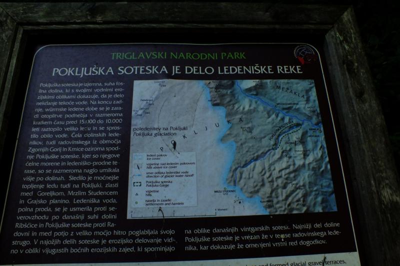 Pot smo pričeli v vasi Krnica, od koder je do izhodišča Pokljuške soteske slabe pol ure lahkotne hoje. Pokljuška soteska, ki je sicer suha dolina, dolga 2 km, imenovana tudi soteska Ribščice, se nahaja ob vzhodnem vznožju alpske planote Pokljuka, nad dolino reke Radovne, v Triglavskem narodnem parku.