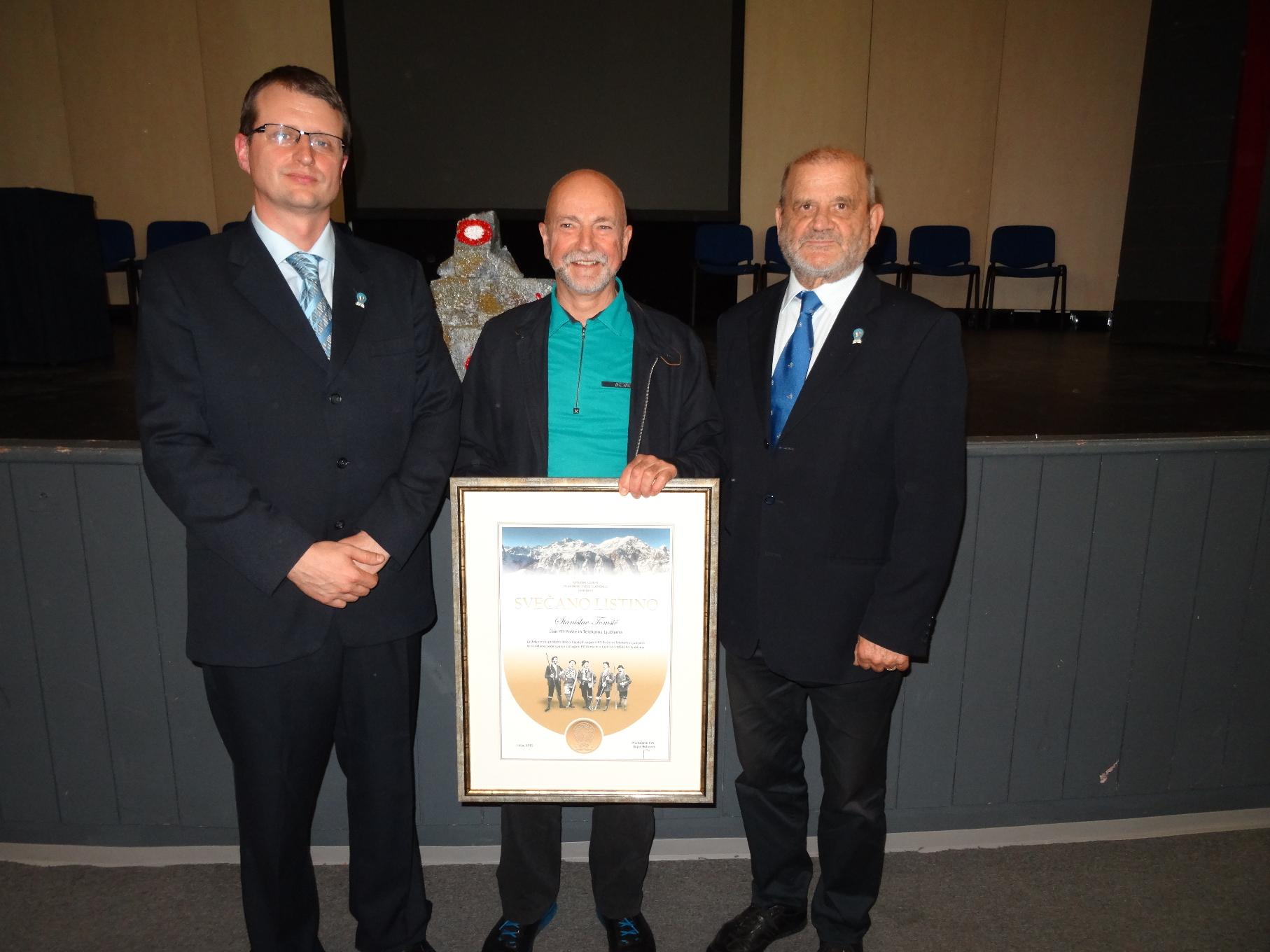Podpredsednik društva Stanislav Tomšič je prejel Svečano listino PZS.