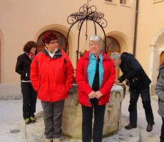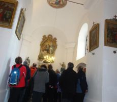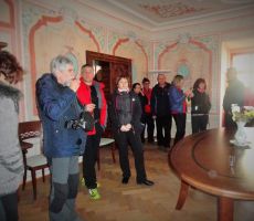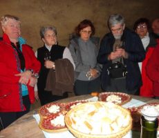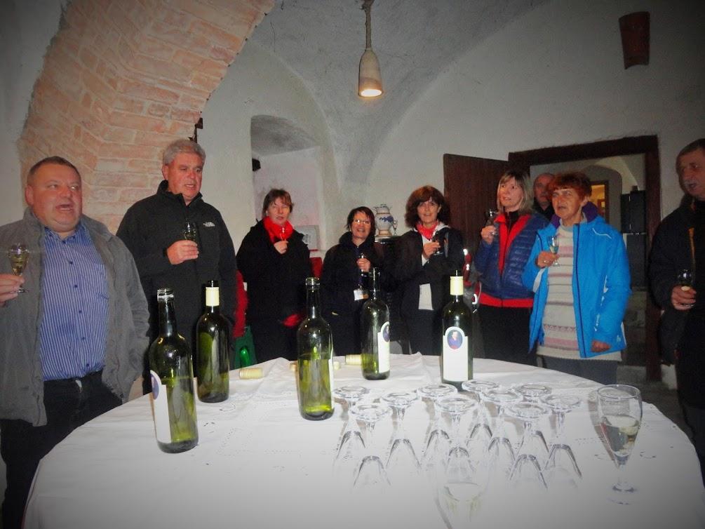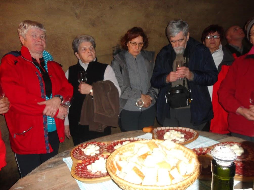 Z avtobusom smo se odpeljali do Brežic, kjer nas je čakala in prijazno sprejela ga. Sonja Klemenčič, turistična vodička za Bizeljsko. Odpeljala se je z nami in nas med vožnjo seznanila z nekaj splošnimi informacijami o Bizeljskem in o poteku našega izleta. Najprej smo se odpeljali na ogled gradu Pišece, nato pa v zanimivo vinsko klet, repnico Najger, ki je izkopana na roke in sega do 20 m v podzemlje. V kleti je bil čas za prvo malico, domače mesne dobrote, sir in pokušina raznih vin iz te kleti. Nadaljevali smo z pohodom do cerkvice Sv. Vida in ogledom Slomškove sobe. Bizeljski kaplan nas je povabil v svojo klet na kozarček ali tudi več modre frankinje, kjer smo skupaj zapeli "En hribček bom kupil, bom trte sadil", ki jo je napisal Slomšek. Ob žlahtni kapljici se je prijetno vzdušje dvignilo in časa za pozno kosilo je ostalo še malo. V gostilni Kocjan smo se zato bolj na hitro okrepčali z bogračem in ajdovim kolačem, kajti čakala nas je še precej dolga vožnja do doma.