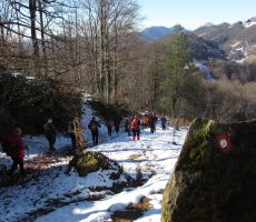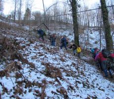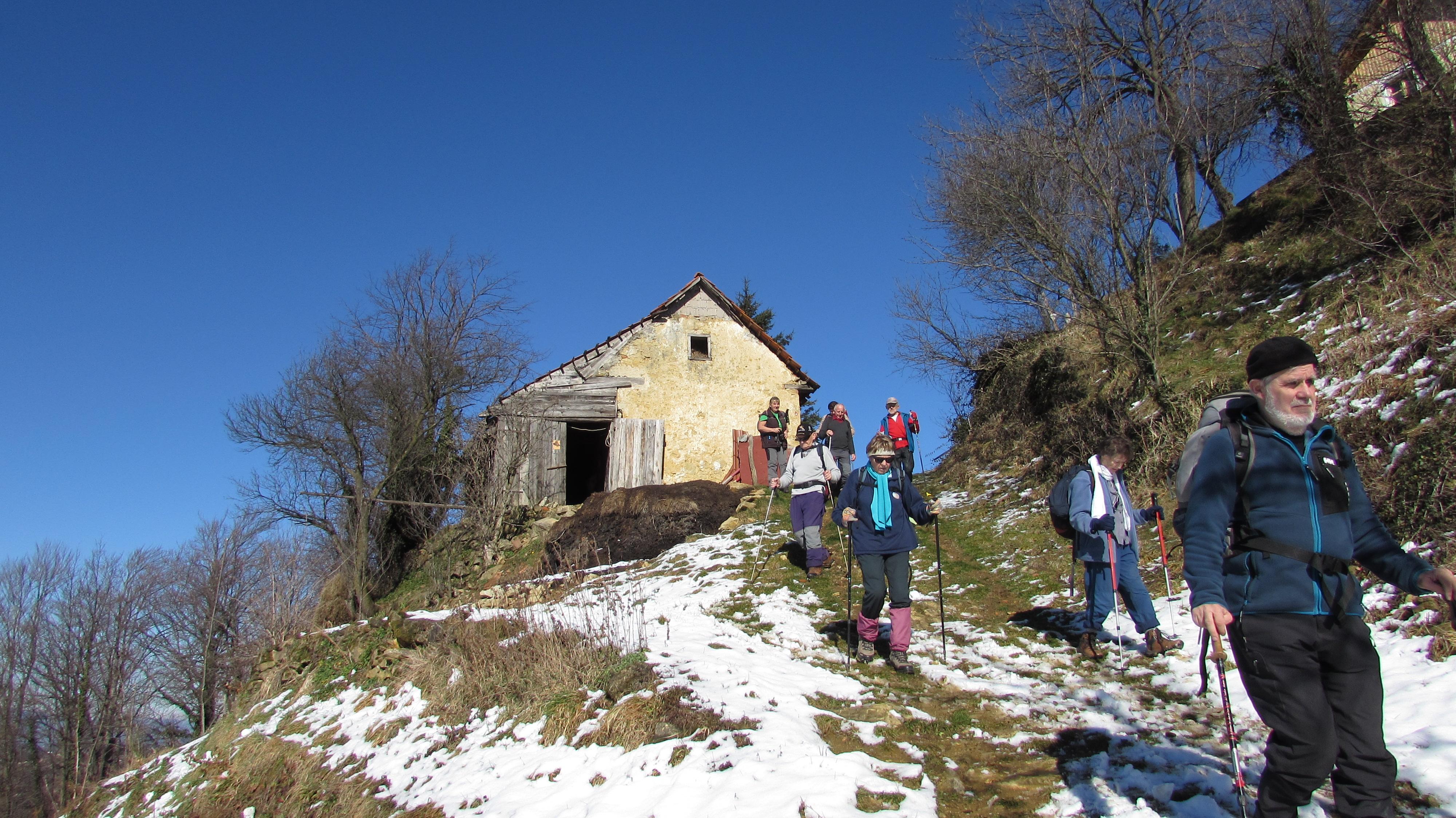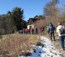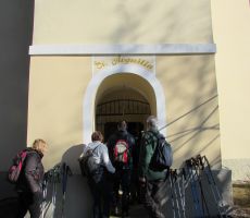 Pohod smo pričeli s strmim vzponom po križevem potu dveh cerkva ob meji s Hrvaško in sicer Sv. Avguština in Sv. Marije Magdalene, ki stojita na haloškem vrhu na višini 504 m. Letnica 1790 na tramu cerkvene hiše pod obema cerkvama je edini podatek o cerkvi. Leta 1880 so obnovili obe cerkvi. Tukaj je ena najlepših razglednih točk v srednjih Halozah, z razgledom na Haloze in panonsko pokrajino - Ptuj, Ravno goro, Trakoščan, Donačko goro, Boč, Pohorje - skratka razgled, ki znova in znova navduši z nepreglednim labirintom strmih pobočij, dolin, ozkih slemen, na katerih kraljujejo haloške domačije. Pred odhodom lahko z zvonjenjem zaprosite Sv. Avguština za izpolnitev skrite želje. Tukaj poteka stara deželna meja iz časov Avstro-Ogrske, kjer so še vidni mejni kamni, ki nas spremljajo večji del poti. Z vrha smo se spustili do domačije, kjer hranijo staro Spominsko knjigo iz leta 1916, ki smo si jo tudi ogledali. Pohod smo nadaljevali ob meji po grebenu čez Vučjo goro, Brezovo goro in se sprehodili do ceste, kjer nas je čakal naš avtobus.
