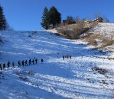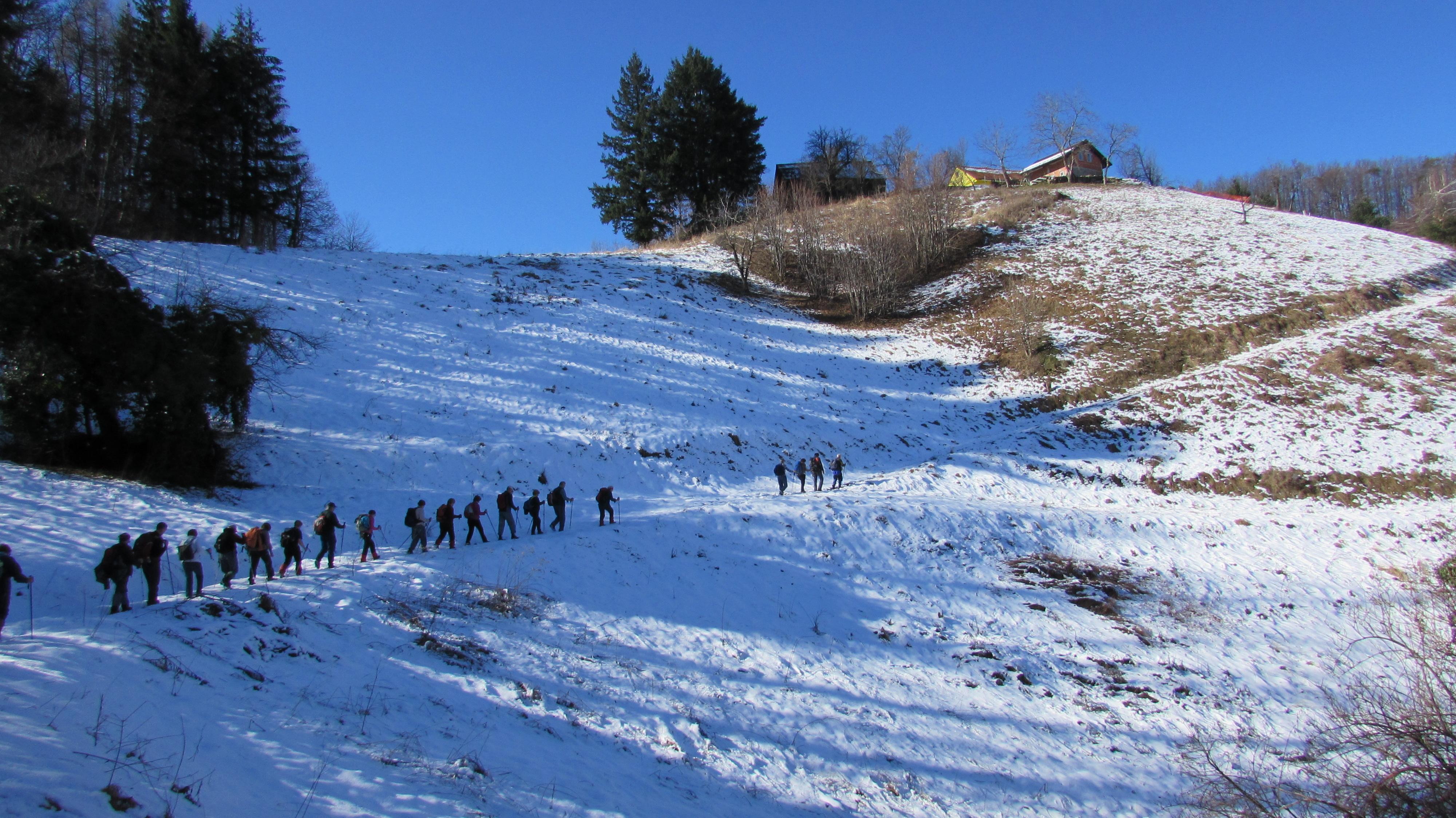 Ob zbiranju na postajališču glavne avtobusne postaje v Ljubljani je pričakalo seniorje in seniorke Planinskega društva Pošte in Telekoma Ljubljana hladno, megleno jutro. Vstopili smo v posebni avtobus LPP, vodnik je ugotovil, da so vsi planinci na svojih sedežih, šofer Zdravko je speljal. Za Bežigradom vstopijo še zadnji udeleženci. Po treh minutah smo že na avtocesti. Minute so hitele in kmalu smo se znašli v Trojanskih tunelih. Na drugi strani nas je pozdravilo sonce, ki nas je osrečevalo ves dan, o megli ne duha ne sluha. Po odcepu za Slovensko Bistrico zapustimo avtocesto. Vodnik Stanko po zvočniku opisuje potek pohoda, kje in kaj bomo vse videli, kako visoko se bomo povzpeli do razgledne točke ob cerkvi na griču sv. Avguština. Na rondoju za Kidričevo se nam pridružita naša znana planinca Jadranka in Branko, ki nas bosta vodila po pohodni poti sv. Avguština. Avtobus zapustimo v bližini Hrvaške meje.