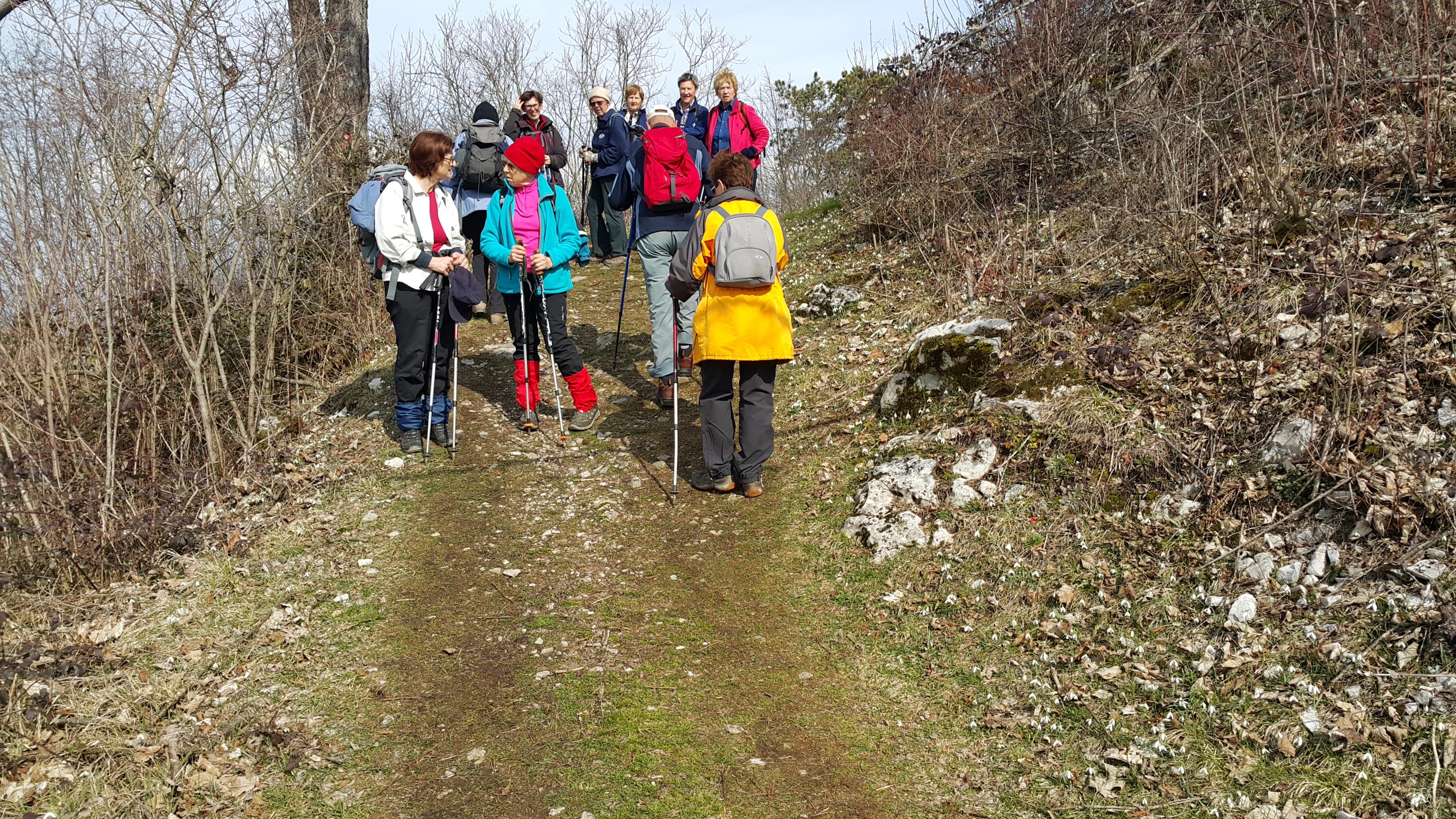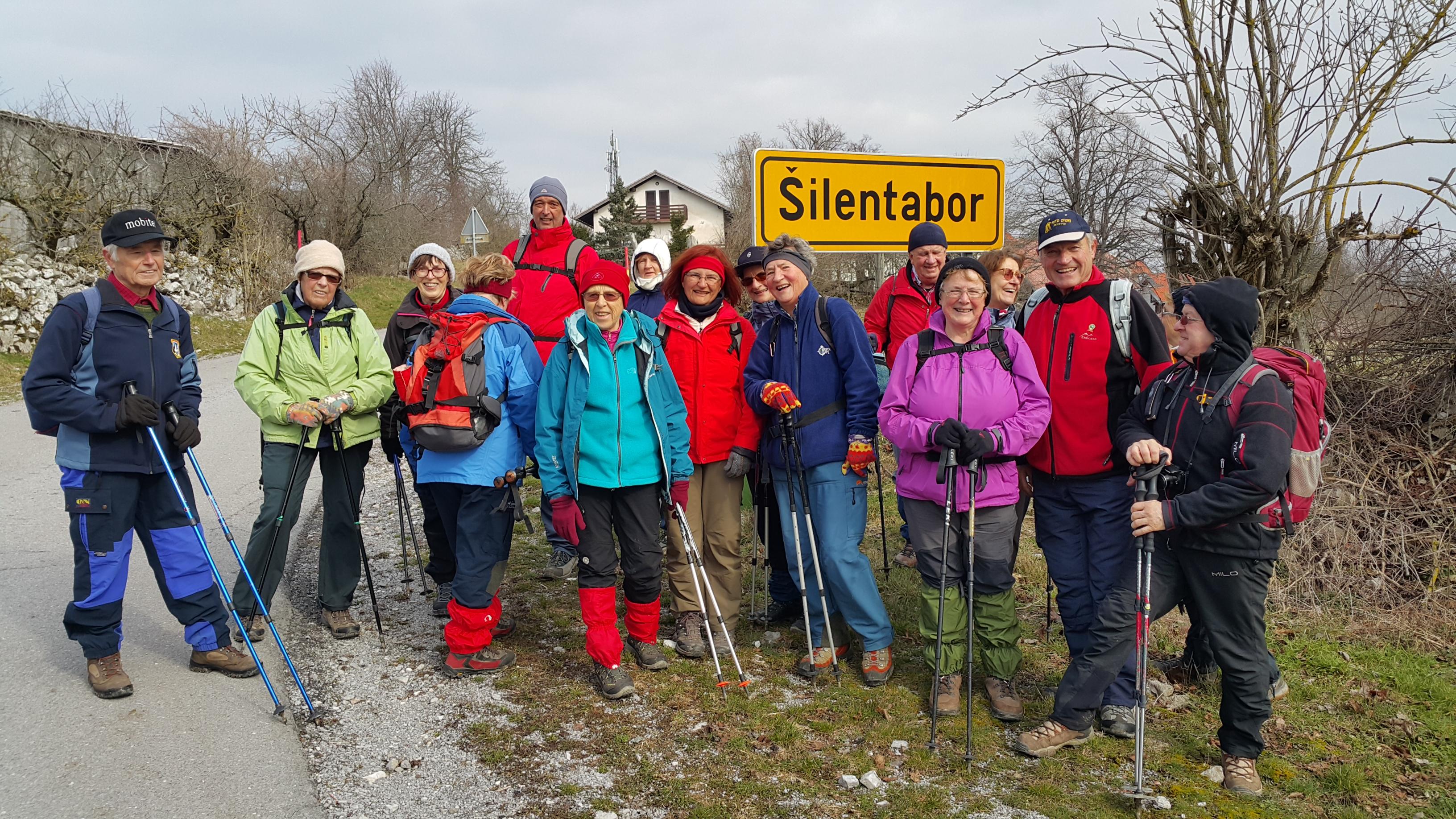 Kmalu po izhodu iz vasi smo v daljavi uzrli zvonik cerkve sv. Martina. Počasi smo napredovali in se veselili novega sončnega dne. Tokratna napoved o lepem in sončnem vremenu se je uresničevala iz minute v minuto. Vreme je bilo prekrasno. Pot skozi gozd nas je hitro pripeljala do odcepa pred vasjo in naprej do cerkvice Sv. Martina. Na kratko smo se razgledali in nadaljevali proti razgledni točki nad vasjo Šilentabor. Na hitro smo se ozrli proti Snežniku in Sv. Trojici v daljavi in se kar se da hitro umaknili z, kot britev ostrega, vetra. Z grebena nad vasjo Šilentabor se je odpiral čudovit razgled na druge vasi v dolini. Celo Slavnik se je videl v daljavi. Vremščica in Nanos sta bila kot na dlani. Toda veter, ki je neusmiljeno prebadal oblačila, je hitro prišel do kosti in nas pregnal nazaj v dolino. Kratek postanek za malico, nekaj malega razlage o zgodovini kraja, požirek tople pijače in smo že nadaljevali turo. Pot proti vrhu Primoža se je nekoliko vlekla. Toda tukaj je bilo tako prijetno toplo. Sonce nas je prijazno božalo, o vetru pa ne duha ne sluha.
