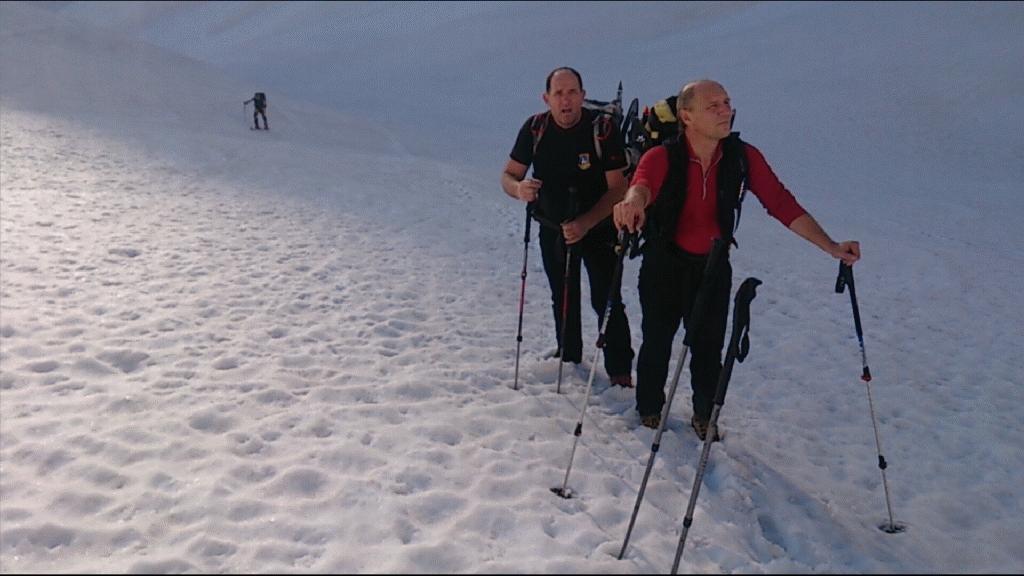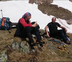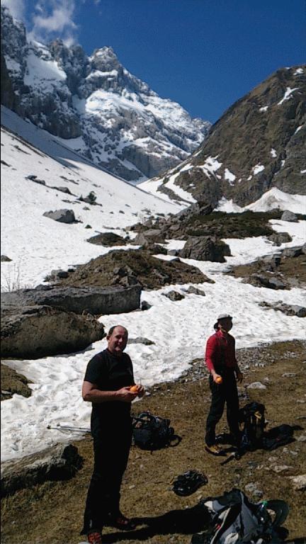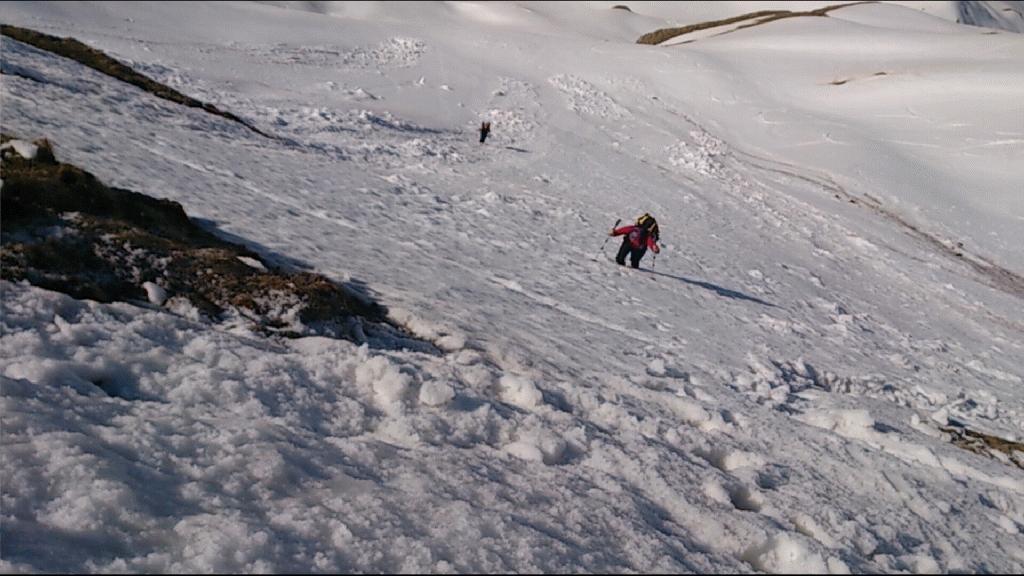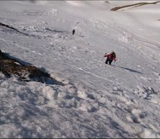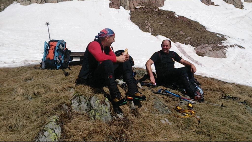 Sam sestop do konca snežišča (zgornja planina) je bila opravljena glede na obutev različno (krplje, dereze, brez). Ob potoku smo naredili zadnjo pavzo in se očedili ter zložili uporabljeno opremo.