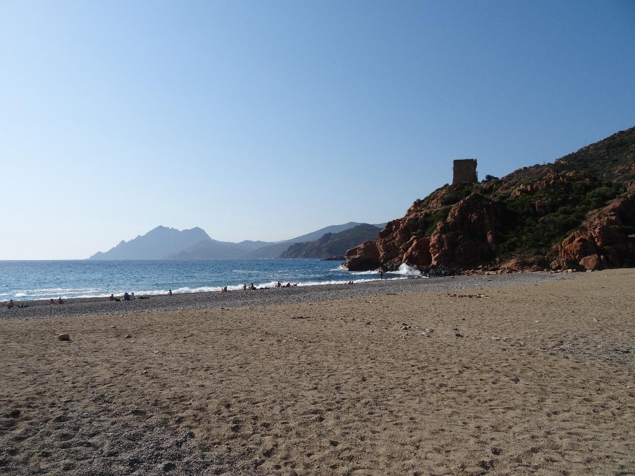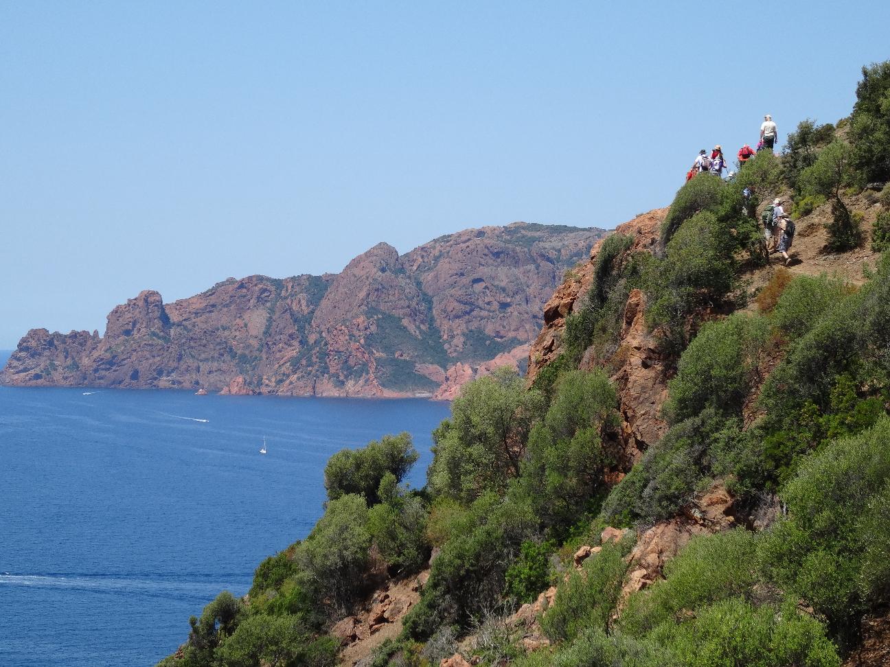 Naslednje jutro se je začel dan naravnih lepot. Prvi pohod smo si privoščili v okolju naravnega parka Scandola. S cestnega prelaza Bocca a Croce / Col de la Croix (260 m) smo se spustili skozi senčni gozd do odmaknjenega zaliva Plage de Tuara (0 m), kjer so si nekateri privoščili skok v morje, ostali pa smo se povzpeli do panoramske točke (150 m) z nepozabnim razgledom na zaliv in vasico Girolata. Povratek po isti poti.