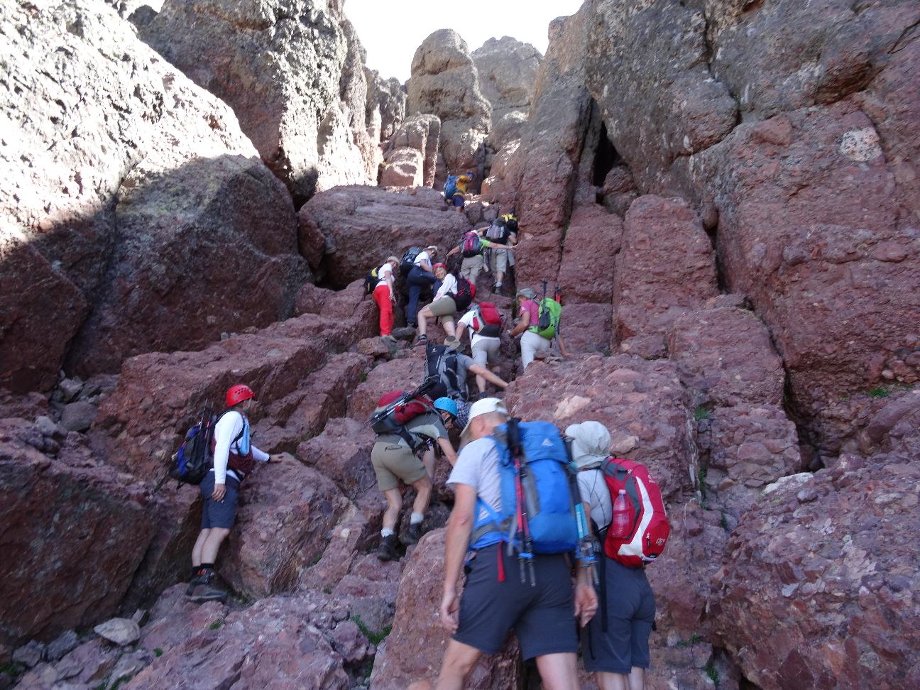 Navsezgodaj, že pred 5. uro, smo se odpeljali do prelaza Col de Vergio (1478 m), ki je najvišji prelaz na otoku. Pred Hotelom Castel de Vergio sta nas pričakala lokalna planinska vodnika Sebastien in Denis, s katerima se nas je 18 odpravilo na zelo zahteven vzpon na atraktivno goro Paglia Orba (2.525 m).