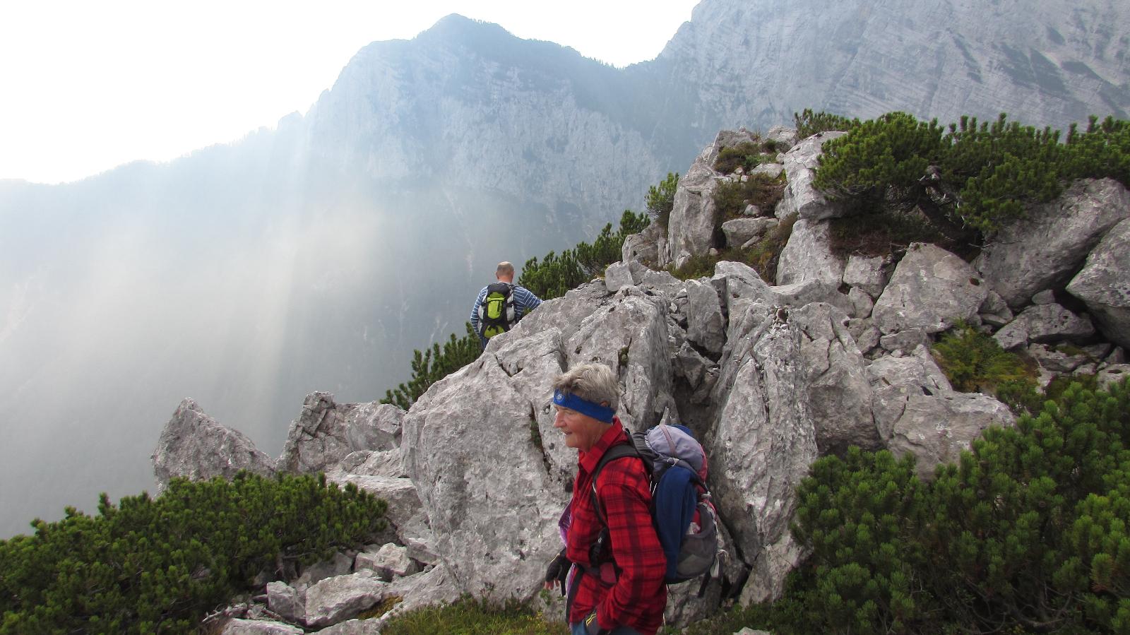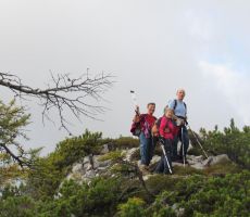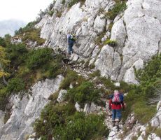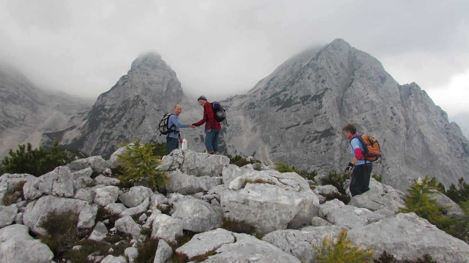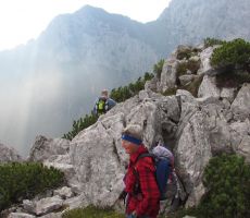 Odpeljali smo se v Mojstrano in dalje v dolino Kot. Od parkirišča nas je pot popeljala po kolovozu, nato pa smo se po lovski stezi povzpeli na greben. Ozek z gozdom poraščen greben nas je najprej pripeljal do Rušnate Mlinarice (1777 m). Do našega cilja smo hodili po izpostavljenem grebenu deloma poraščenem z ruševjem. Z vrha Požgane Mlinarice (1868 m) se nam je odprl pogled na Rjavino, dolino Vrat z okoliškimi gorami, ki so jih delno zastirali oblaki.