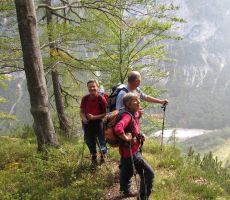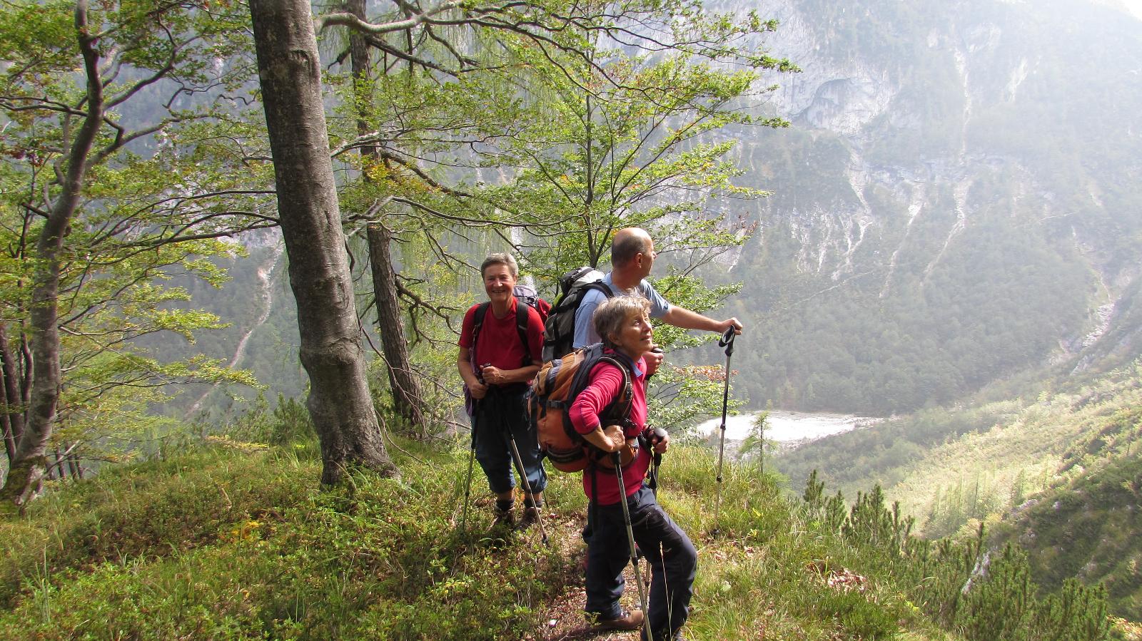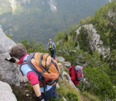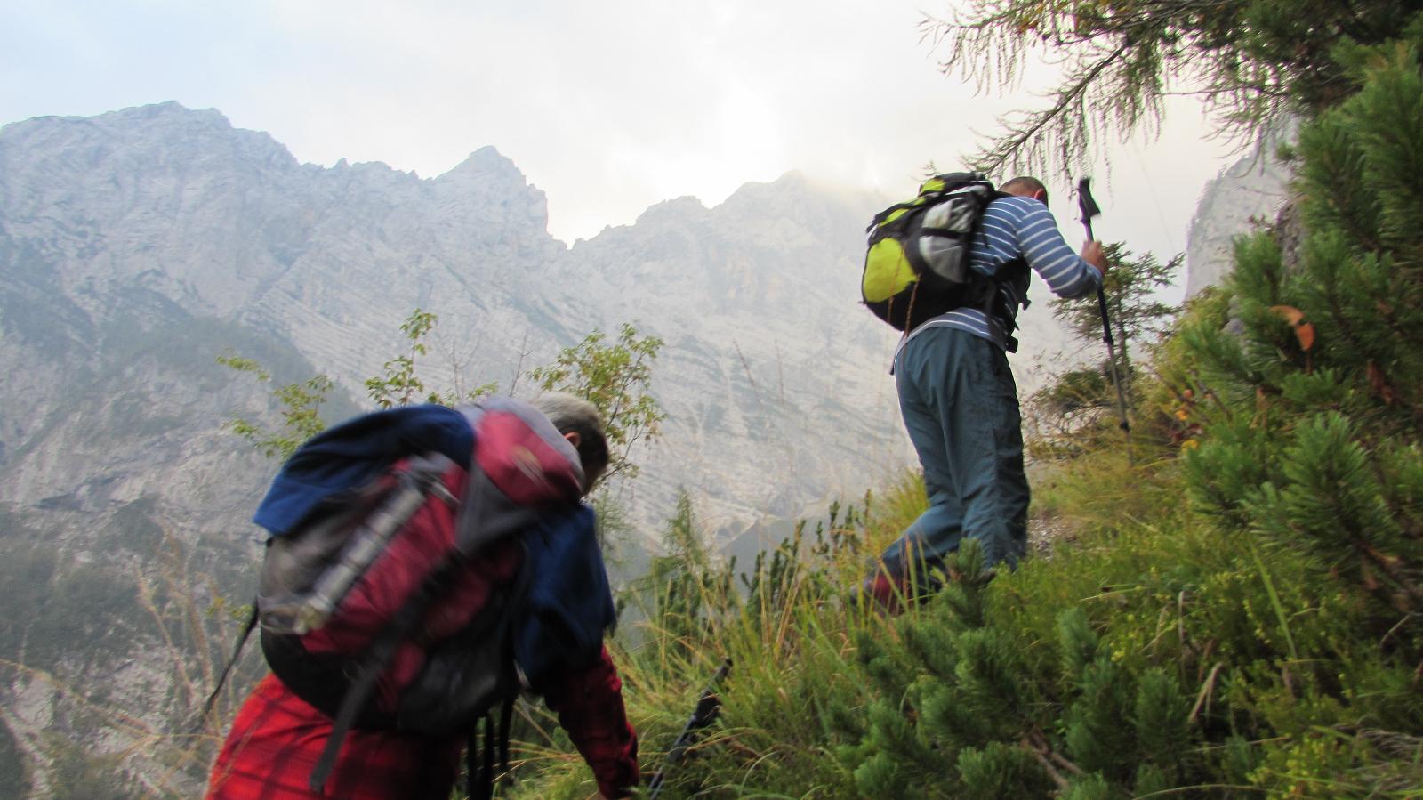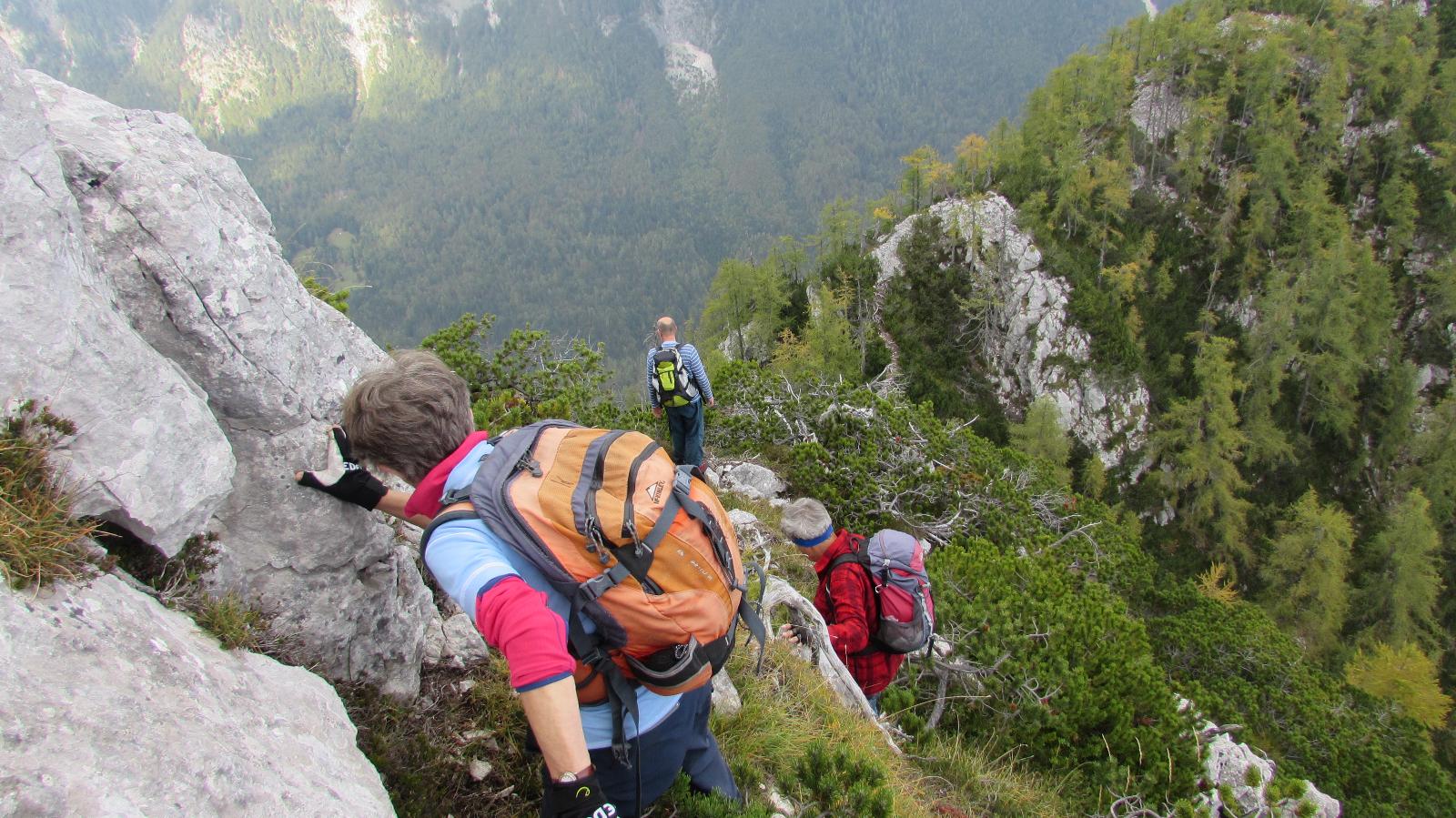 Odpeljali smo se v Mojstrano in dalje v dolino Kot. Od parkirišča nas je pot popeljala po kolovozu, nato pa smo se po lovski stezi povzpeli na greben. Ozek z gozdom poraščen greben nas je najprej pripeljal do Rušnate Mlinarice (1777 m). Do našega cilja smo hodili po izpostavljenem grebenu deloma poraščenem z ruševjem. Z vrha Požgane Mlinarice (1868 m) se nam je odprl pogled na Rjavino, dolino Vrat z okoliškimi gorami, ki so jih delno zastirali oblaki.