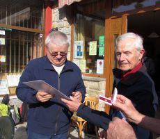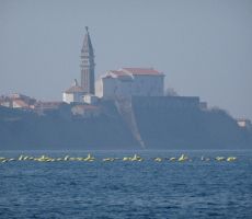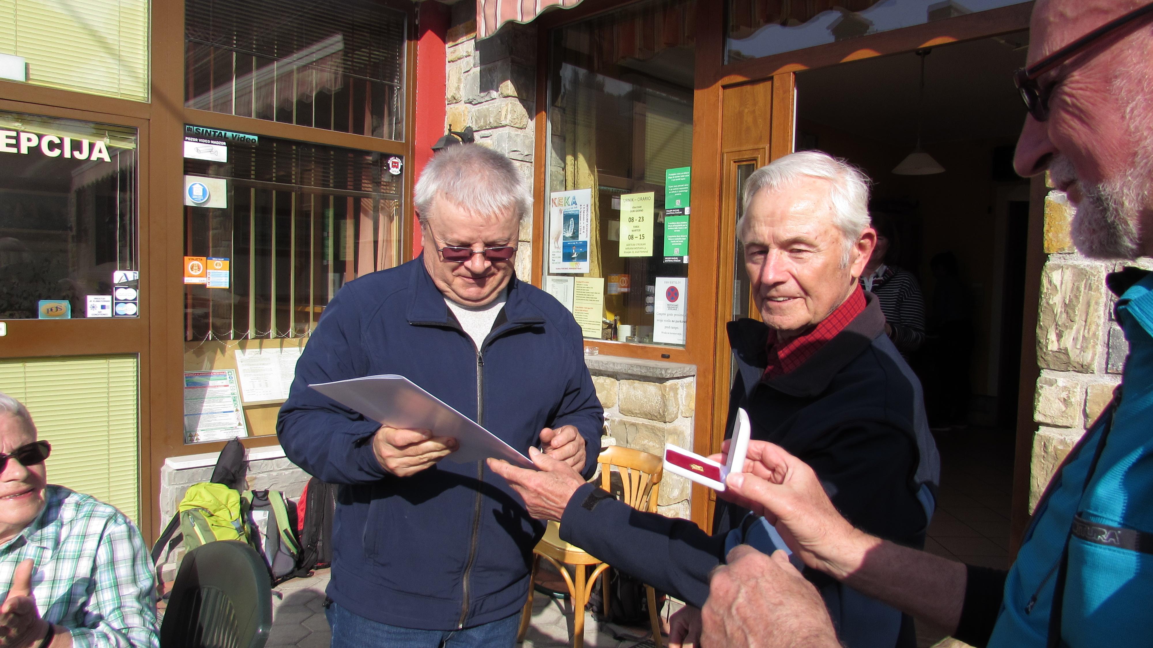 Po končanih ogledih nas je čakala malica v Avtocampu Strunjan. Tu se nam je pridružil naš stari znanec Branko Bratož – Ježek, planinski vodnik PD Slavnik, ki nas že dolga leta vodi po manj ali bolj znanih poteh v Slovenski Istri in Tržaškem Krasu. Za njegovo prizadevnost mu je letos naše planinsko društvo podelilo Zlati znak PD PT Ljubljana, ki mu ga je ob tej priložnosti izročil Stanko Jaki, predsednik komisije za priznanja.