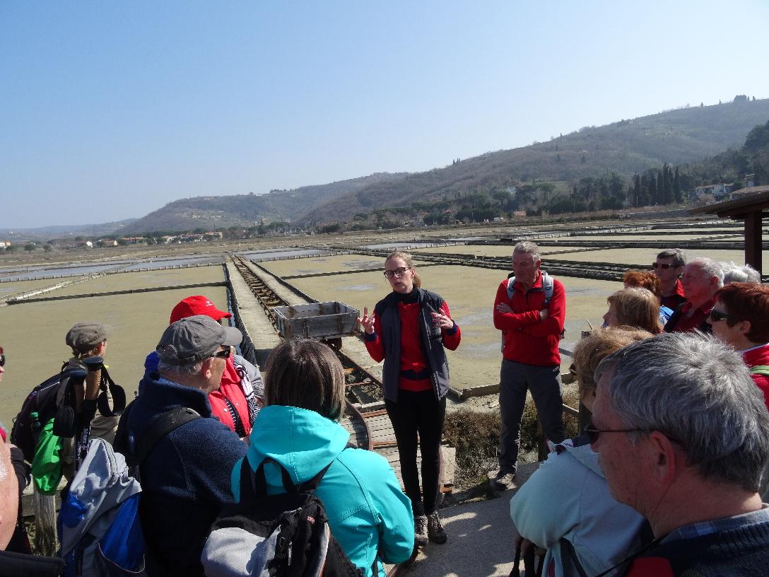 Spustili smo se do hotela Krka in se na koncu oddahnili ob bifeju na strunjanski plaži. Nadaljevali smo z ogledom solin, kjer že več kot 700 let pridobivajo sol na tradicionalen način. Zaključili smo v Solinarski hiši z ogledom filma o Krajinskem parku Strunjan.