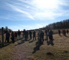 Letošnji 54. občni zbor je potekal v Lipi na Lehtah pri našem članu Božotu in ga je organiziral naš neumorni predsednik Ivan Trampuž. Pred uradnim delom občnega zbora smo imeli še krajši izlet po Krasu do Trstelja. Po jutranji dobrodošlici nas je pot vodila po Kraških gmajnah med vinogradi do kala imenovanega Poganjca, ki so ga pred leti lepo obnovili. Od tu smo se odpravili proti severu mimo starega vojaškega pokopališča iz I. svetovne vojne,kjer so pokopani Madžarski vojaki. Pokopališče leži ob vznožju Sv. Ambroža, kamor smo bili namenjeni po starih vojaških poteh. Med potjo smo si ogledali še obnovljeno pastirsko zavetišče iz kamna, značilno za krške pašnike. Krajši počitek smo naredili ob manjši jami Lunijev hram, ki je v preteklosti zaradi nizkih temperatur v njej služila kot shramba za hrano in vino, ki je malo pod vrhom Sv. Ambroža.