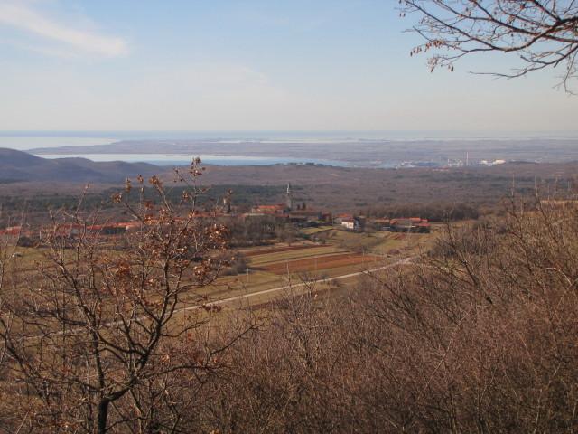 Sv. Ambrož (531 m), poimenovan tudi Tabor, s svojo stožčasto obliko in varno lego na robu planote že od daleč opozarja nase. Na njem srečamo dediščino različnih obdobij od prazgodovine naprej. Vrh obroblja prazgodovinsko gradišče z obsegom več kot šeststo metrov. Večji del je utrjen s kamnitim okopom, na zunanji strani visokim več kot deset metrov, le na jugozahodni strani zaradi skalovitega terena okop ni bil potreben. V notranjosti gradišča, kjer so bila preprosta bivališča, so našli številne drobce prazgodovinske lončenine. Gradišče je bilo tudi v kasnejših obdobjih zatočišče za domačine iz vasi pod njim. Na vrhu je bila tudi cerkvica sv. Ambroža. Ohranjene so le ruševine, še najbolje vzhodni del cerkve, kjer je stal oltar. Gre za romansko cerkev “istrskega tipa”. Poleg cerkve so vidni še ostanki nekdanjega kmečkega dvorca. (vir: www.storija.info/cms/data/pages/files/000016_resource1_orig.pdf)