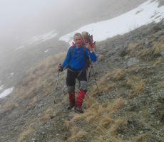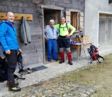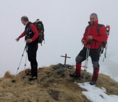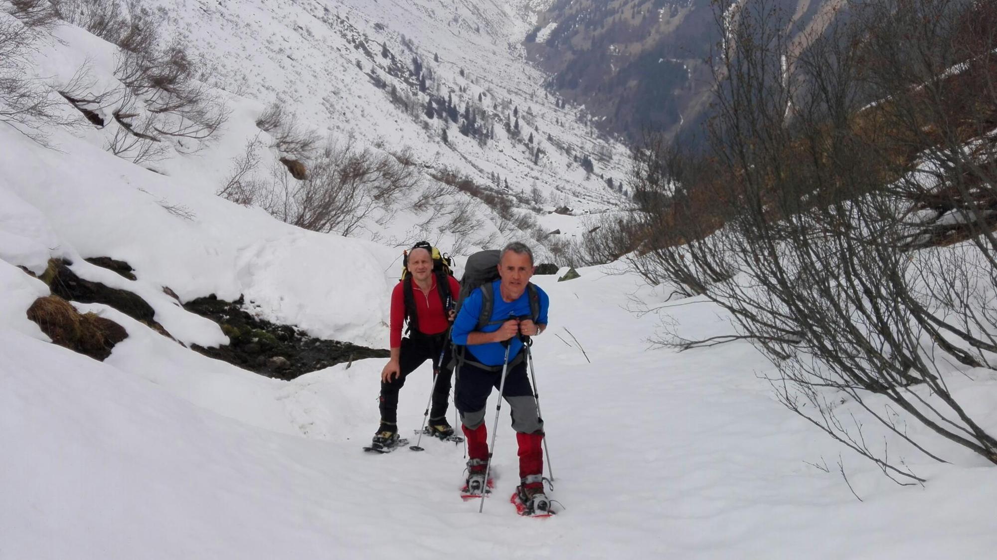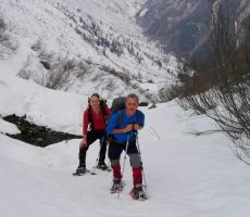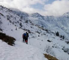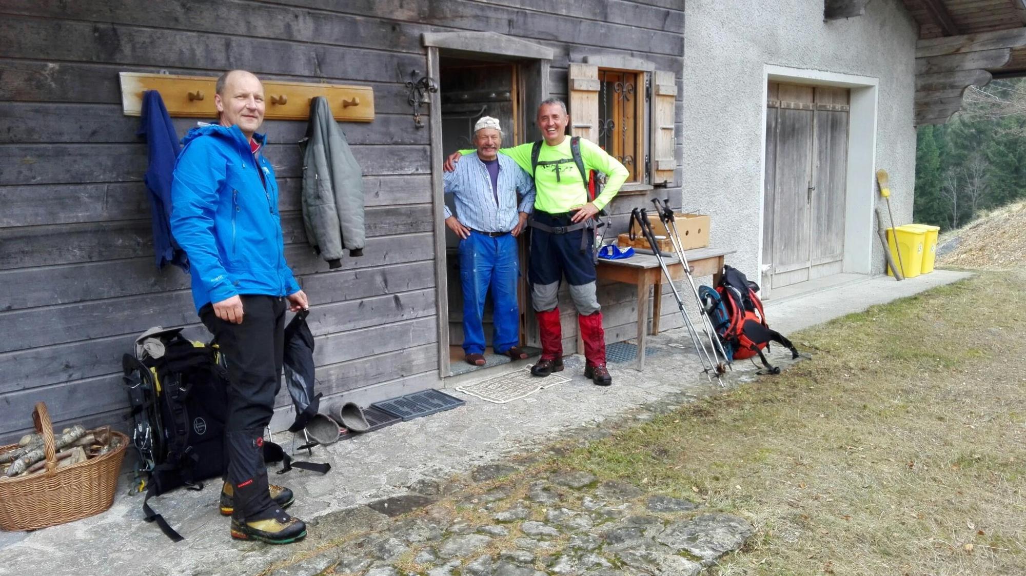 Vožnja po avtocesti Solkan-Udine-Paluzza-Cleulis-Coll Alto (1150m), kjer smo poiskali ustrezno parkirno mesto. Glede na videno iz doline, sem predlagal za krožno pot in tako smo si popestrili dan. Po cesti stopimo do kraja Coll Alto, kjer nas označena pot 155 vodi do gruče hišic St. li Frochies. Ko prekrižamo makadamsko cesto, se usmerimo po makadamki v desno in že smo na snegu (nadenemo si gamaše in krplje) in gremo do prve planine C. ra Lavarier. Prvi postanek za pijačo, za nami je že ura in pol hoje ter pogled na sosednje vrhove, ki pa so prekriti z nizko oblačnostjo. Nadaljujemo proti naslednji planini C.ra Chiaula alta, kjer so pa samo ostanki manjšega hleva in ostanki iz 1. svetovne vojne. Glede na dobre snežne razmere se odločimo da gremo po grapi naravnost na sedlo med Monte Terzo in sosednjim vrhom. Mrzlota in malo vetra nas prisilita, da čim hitreje snamemo krplje in gremo proti našemu vrhu. Pred nami so sveže stopinje in na vrhu MONTE TERZA srečamo domačina Elvia, ki je zaslužen za postavitev izvirnega znamenja. Lično oblikovan križ in manjši zvon z vojaško menažko ter v njej shranjeno vpisno knjigo. Seveda ni bil sam, s seboj je prinesel na vrh tudi Čivavo. Beseda da besedo in po lepem pogovoru nas povabi domov na kavo. Nas čaka še obvezna malica in slikanje, vidljivost je na žalost slaba. Sestop poteka do sedla v smeri vzpona nato pa po vzhodni grapi mimo ostankov zgornje planine, kjer snamemo krplje ter tu nas tudi dobi babje pšeno, ki nas spremlja do spodnje obnovljene planine C. ra Monte Tierz bassa še nekaj spusta skozi gozd in že smo na stiku jutranjega križišča (krog je zaključen). Po že znani poti do St. li Frochies in nato na obvezno kavo in ostale dobrote, ki nam jih ponudi Elvio. Hvala ti za vse Elvio in tudi ženi za sladke dobrote, ki smo jih použili. Čas nam v prijetnem druženju hitro mine in že moremo sestopati do avta in nato samo še vožnja proti domu.