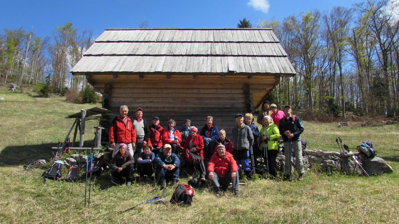 Prispeli smo na veliko travnato jaso, na sredini katere stoji objekt za shranitev sena. V neposredni bližini pa biva osamljeno košato drevo, pod drevesom pa klopca za počitek. Primeren kraj za okrepčilo nas je pritegnil in posedli smo ter zaužili dobrote iz nahrbtnika, Danilo pa je s fotoaparatom naredil gasilski posnetek naše skupine planinskih pohodnikov.