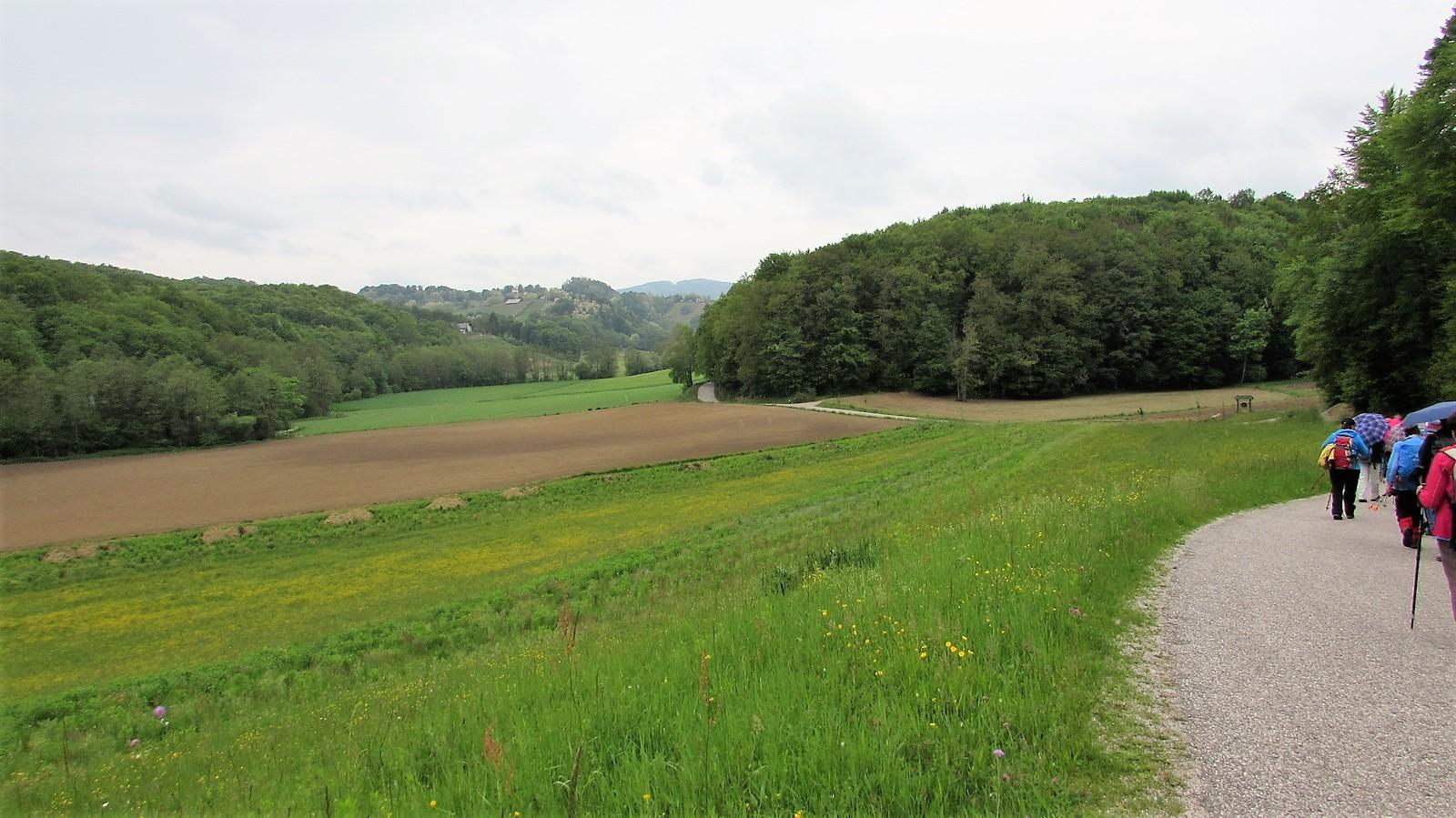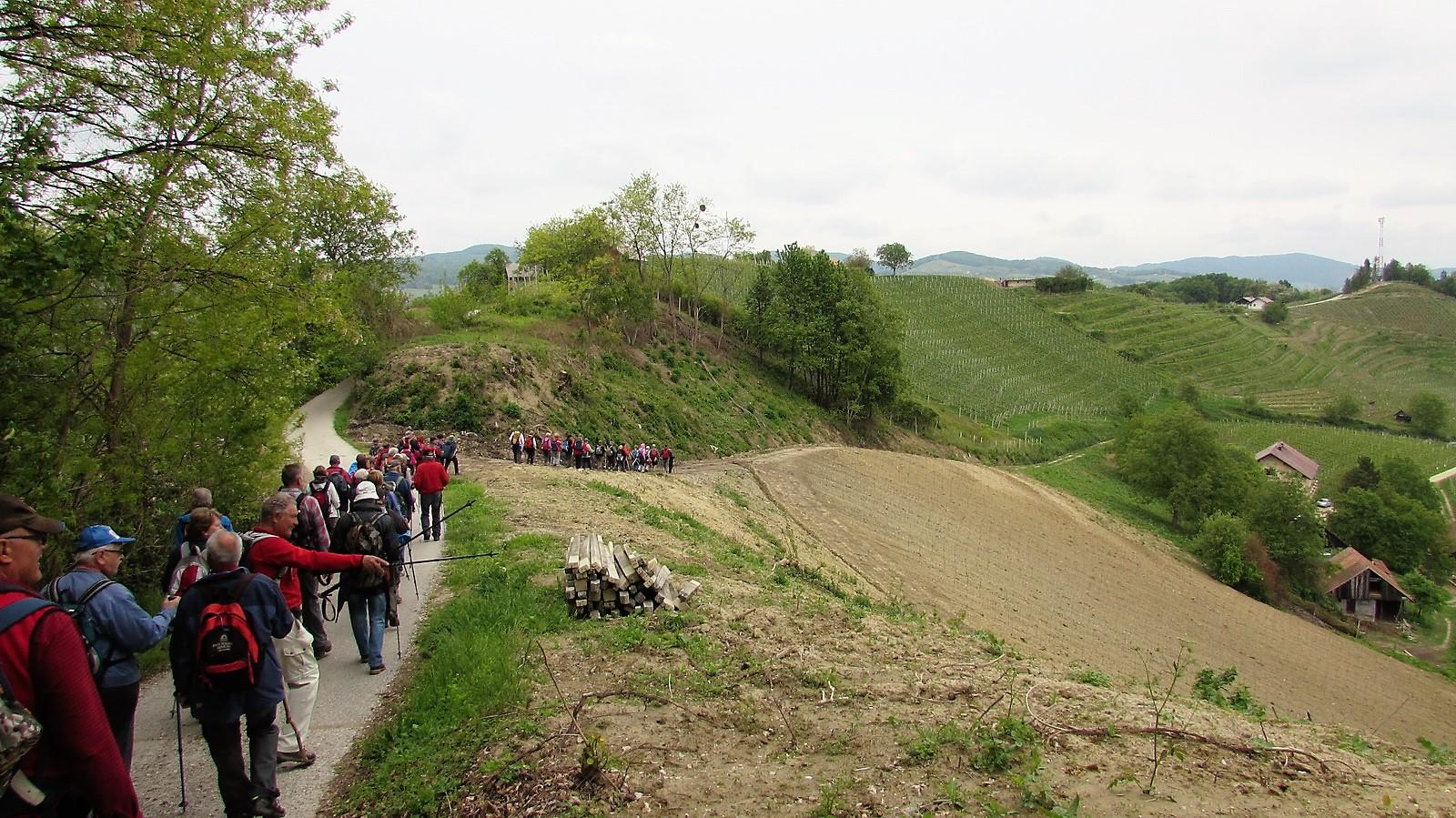 Naš skupni pohod smo pričeli mimo Isteničeve kleti dobro razpoloženi. Oblaki na nebu so občasno prepustili tudi sončne žarke,tako da smo se kar dobro počutili. Mimo posameznih domačij in vinogradov smo se dvigali vse više in višje po razgibanem, hribovitem in razglednem terenu. Hodili smo mimo tudi razpadajočih objektov, zidanic, ki dajo klavrno podobo stanja v lepi naravni pokrajini. Občudovali smo ogromno akacijevih , cvetočih dreves in tudi prvi bezgovi cvetovi so že vabili.
