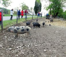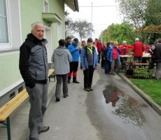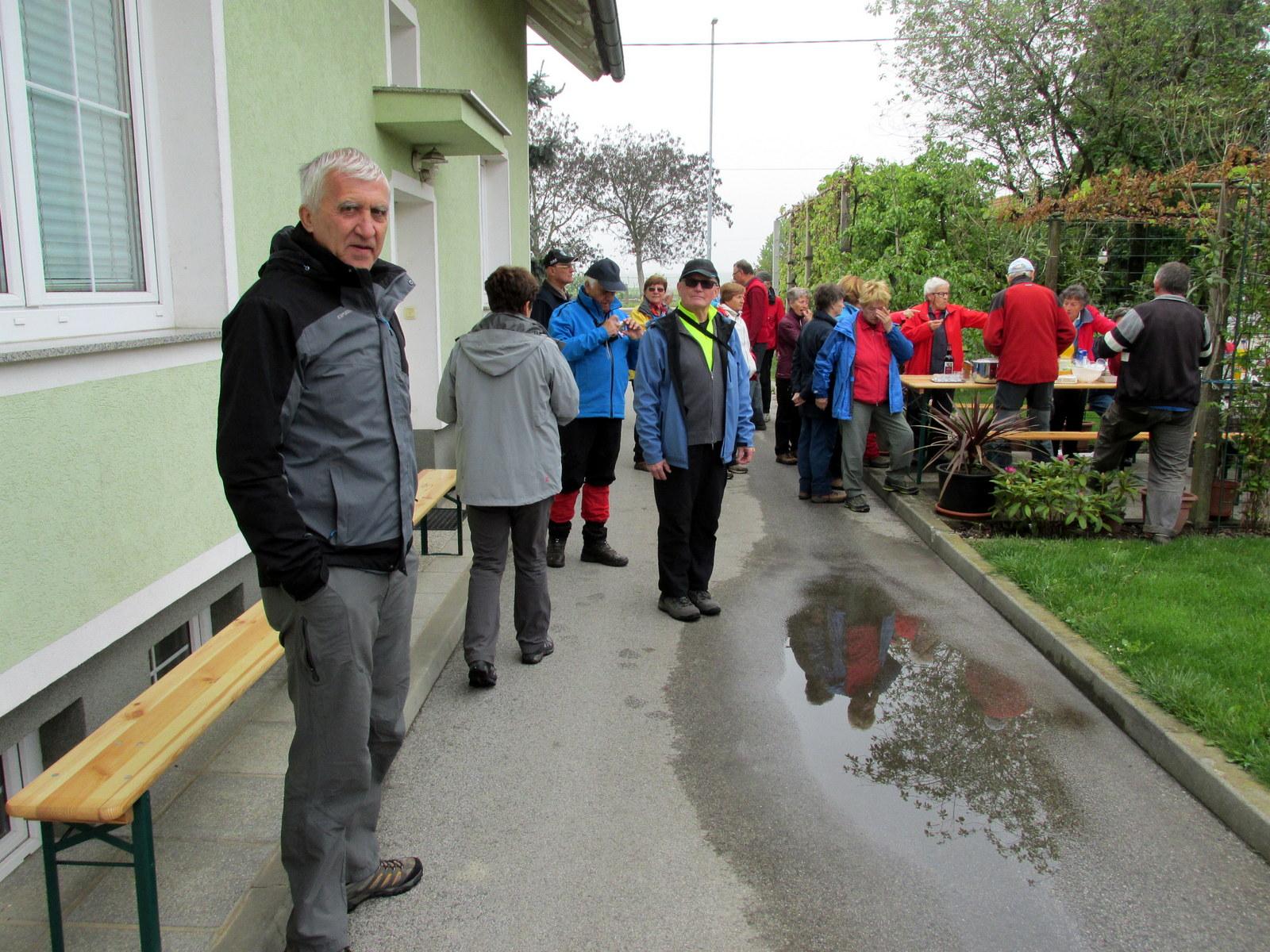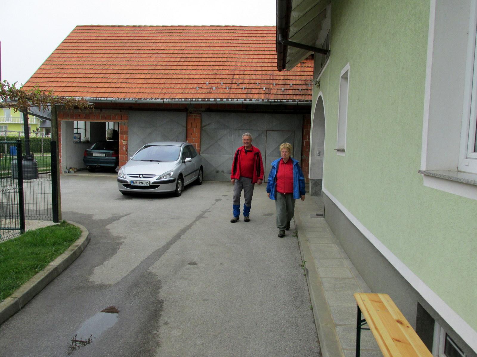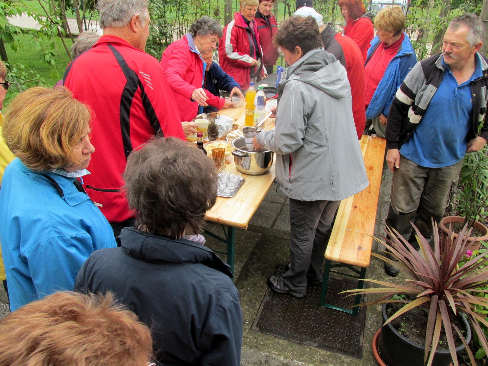 S povabilom na svojo nekdanjo domačijo nas je prijetno presenetila Marija Veble, članica PD Brežice, kjer so nam njen brat in njegova družina pripravili pravcato jutranjo gostijo – razne pijače in prigrizke, tako da smo prijetno potešeni lahko nadaljevali pot proti drugim znamenitostim v tej najbogatejši občini na tem področju.