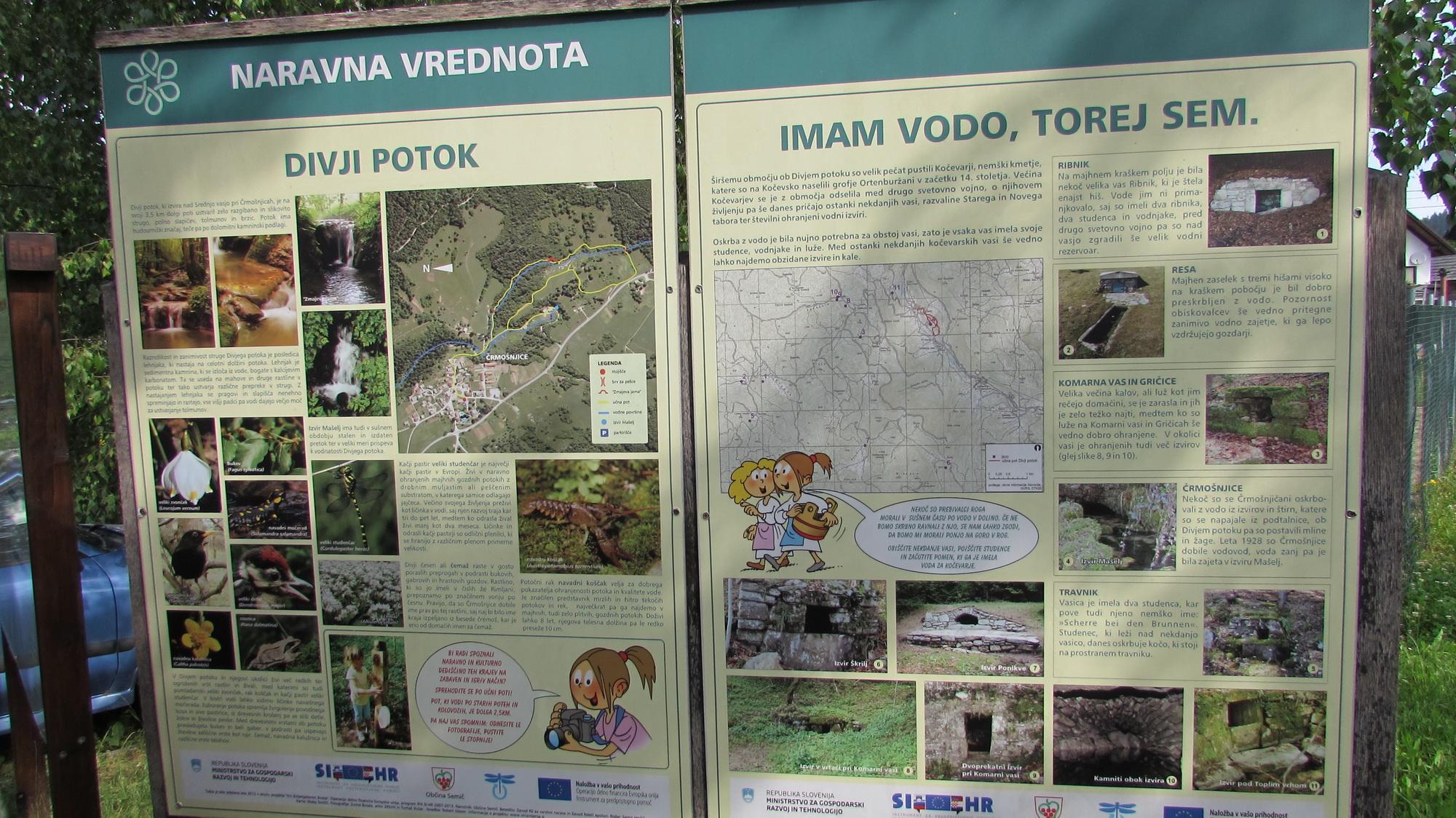 Na postaji nas je pričakal naš stari prijatelj, Jože Žugelj. Kraj Črmošnjice je dobil ime po čemažu, je pojasnil. Pokazal nam je še, kje smo bili lansko leto (Mirna gora) in nas na hitro orientiral. Po kratki predstavitvi plana ture pred slikovitimi informacijskimi tablami, nas je popeljal poti Divjemu potoku. Le ta izvira nad Srednjo vasjo pri Črmošnjicah in je na svoji 3,5 km dolgi poti ustvaril zelo razgibano in slikovito strugo, polno slapičev, tolmunov in brzic. Potok je hudourniškega značaja in teče po dolomitni kamniti podlagi. Sliko enkratne lepote in barvitosti, ki so jo na čisti vodi in z mahom porasle bregove pričarali topli, skozi zelene liste prodirajoči sončni žarki, je dopolnjevalo šumenje in žuborenje. To je potrebno doživeti z vsemi čuti – videti, slišati vohati in otipati, pa tudi okušati. Neponovljivo simfonijo narave je vsak doživljal po svoje in ploha besed ne more opisati to, kar smo udeleženci videli ter doživeli, ker smo se tam mudili ob pravem času.