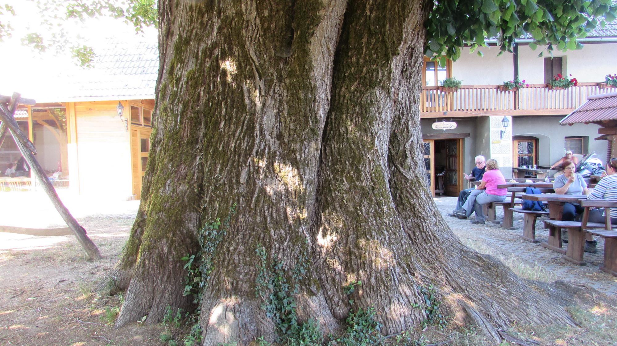 Preden smo prišli do gostilne, pri več kot 400 let stari lipi, nas je Jože znova presenetil. Ustavili smo se pred njegovo hišo, kjer nam je postregel z osvežilnimi napitki. Razgled, ki se odpira z njegovega balkona je … neverjeten. In kot, da se nikomur ni več mudilo na kosilo.