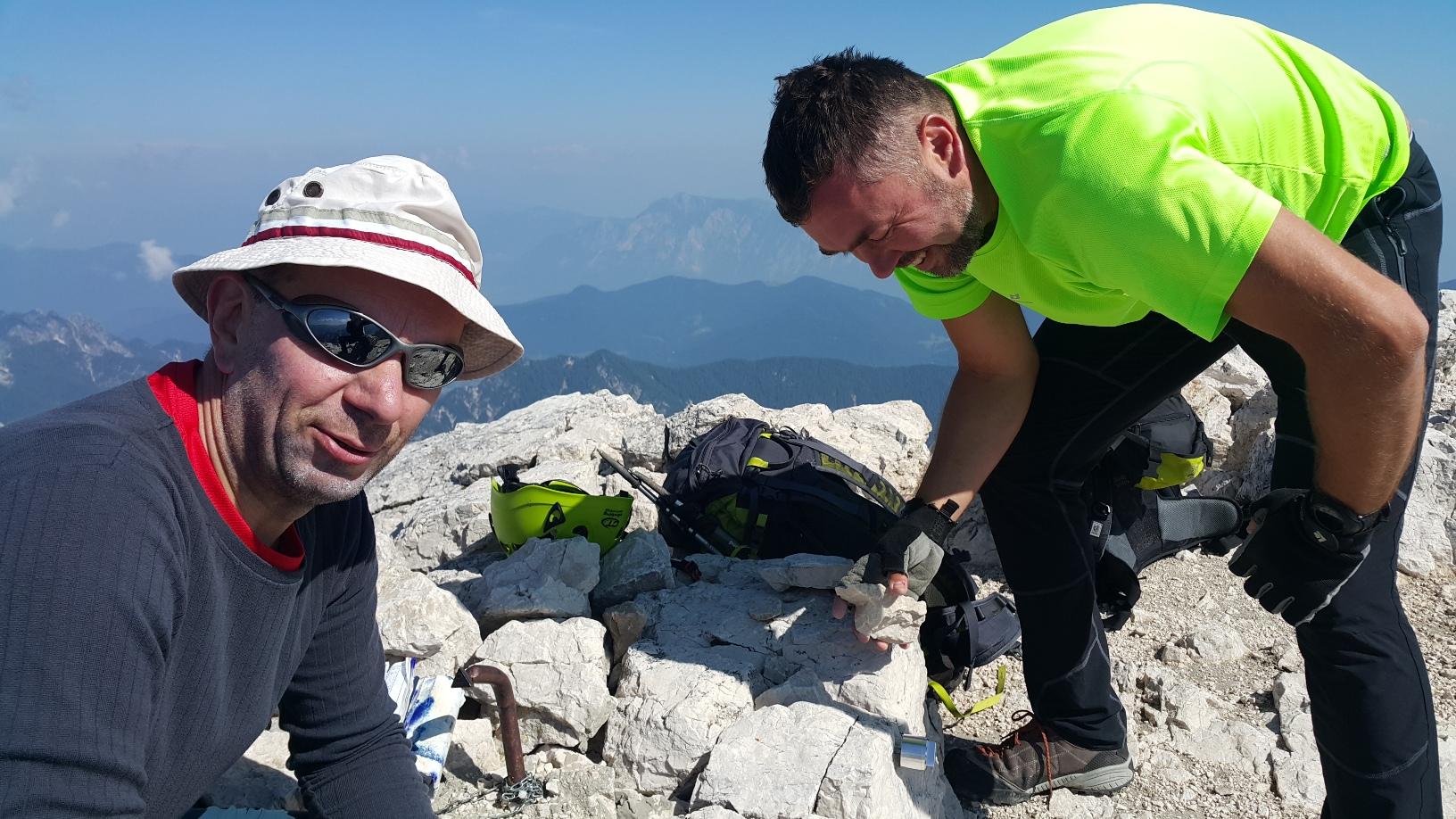 V slogi je moč: in tako smo vodniki, markacisti in gospodar doma ter ob pomoči še koga, uspeli na vrhu Prisojnika, namesto izrabljenega žiga, dne 24. junija 2017, postavit nov kovinski žig.