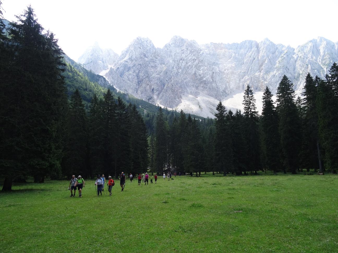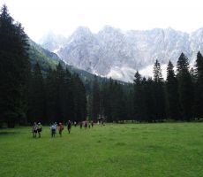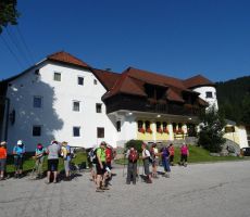 Po razporeditvi izletov na 12 mesecev je za ta izlet ostal samo še julij. To pa je že vroč mesec, zato se mi je takoj postavilo vprašanje ali je 1577 metrov visoki vrh sploh primeren za seniorski izlet, še posebej, ko sem v opisu prebral, da strmi pristop na vrh poteka po južnem pobočju, višinske razlike pa je skoraj 600 metrov. Zato sem se v začetku junija odpravil na ogled v Slovenji Plajberk / Windisch Bleiberg (1000 m) in ugotovil tudi, da ozka cesta, ki se odcepi pri Podnu / Bodental v Plajberški jarek sploh ni primerna za avtobusni prevoz do izhodišča hoje. Kar hitro je bilo treba spremeniti traso izleta iz katere je izpadel Psinski vrh, ostalo je le Jazerce. Odločil sem se za lahko krožno turo po dolini Poden, z ogledom modrega jezerca s slovenskim imenom Jazerce in nemškim Meerauge (Morsko oko), nadaljevanjem do Podnarjeve domačije, s krajšim počitkom in koncem na Mlaki pod severnim ostenjem Vrtače. Povratek pa po drugi strani doline, kjer se pot najprej nekoliko dvigne, se spusti do potoka, ponovno dvigne do zgornje vasi in se nato spusti do gostišča Sereinig, kjer sem se dogovoril za toplo malico na koncu izleta. Takšna je bila tudi vsebina razpisa izleta, vendar me je malce skrbelo, da bo za nekatere, bolj kondicijsko pripravljene, udeležence premalo hoje, predvsem pa višinske razlike, zato sva se teden pred izletom z Danilom odpravila pregledat še pot do Ogrizove planine (1572 m) in sestop v Poden. Na koncu doline naju je ujel dež, kljub temu sva nadaljevala po planinski poti 662 in po kakšni uri prispela do križišča s potjo 603, ki gre levo k Celovški koči, desno pa na Ogrizovo planino. Od tod se začne spuščati po gozdu in strmih bregovih do zgornje vasi Poden, tam pa se začne že znana krožna pot št. 10 po dolini. Ugotovila sva, da je tura sicer lepa, vendar zaradi višinske razlike in mestoma zahtevne steze ni primerna za seniorski izlet. Tako je ostalo pri prvotnem načrtu, ko se nas je v četrtek zjutraj 44 odpeljalo iz Ljubljane v Tržič, kjer smo imeli krajši postanek za obvezno jutranjo kavo in nadaljevali do prelaza Ljubelj. Tu sta morali žal izstopiti udeleženki, ki sta doma pozabili osebne dokumente in se sami odpravili na izlet skozi Bornove tunele proti planini Prevala. Ostali smo se odpeljali skozi predor na drugo stran Karavank, kjer avstrijski policisti ponovno preverjajo dokumente, kljub Evropi brez meja. Še malo in smo iz soteske Čepe zavili levo v Slovenji Plajberk ter se ustavili pri gostišču Sereinig. Od tu smo se v prijetnem sončnem vremenu odpravili po načrtovani poti, se ustavili pri zanimivem mlinu in Jazercu, se odpočili pod mogočno lipo pri Podnarju in se nato ustavili šele na koncu doline na Pravljičnem travniku, kjer smo vsak po svoje preživeli uro postanka, nekateri so se odpravili malo višje pod Vrtačo, drugi so zobali sladke jagode, ostali pa veselo kramljali … Nazaj smo se odpravili po drugi strani doline in se pravočasno vrnili v gostišče na zasluženo malico. (Skupaj okrog 10 km hoje, 265 m višine, 4 ure s počitki). Sonce je prijetno grelo, zato smo še nekaj časa uživali v počitku in kramljanju, dokler ni vse prehitro prišel čas odhoda proti Ljubelju, kjer sta se nam pridružili naši planinki. Na naše veselje sta bila z nami na izletu tudi dva mlada člana društva, 12 letni David in 10 letni Gal. Verjetno se bomo nekateri kmalu spet oglasili v tem koncu, saj nas še vedno čakajo Psinski vrh, Rjauca, Kosmatica in drugi planinski cilji.