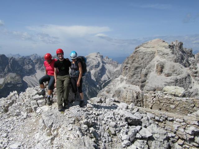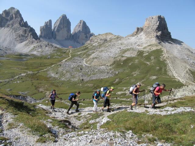 Ob 5,00 smo se dobili v Vrtojbi in ugotovili, da sta dva odpovedala in in je tako vlogo drugega šoferja (prvi je Krpan) prevzela Karmen, ki se nam je tokrat pridružila prvič kot pomočnica vodnika. Ob 7,30 smo že bili pri koči rif. Auronzo 2320m. Mimo Treh cim smo v slabi uri dosegli rif. Locatelli in nad njim zagledali naš cilj. Z dobrim korakom smo dosegli njegovo vznožje. Pogled nanj je pravil, da je ogromno melišče pred nami, mi pa smo se prepričali, da so lahko tudi melišča trda in je korak nanje trden. Malce smo počivali, si ogledovali okolico, Krpan man je opisoval sosednje vrhove in že je bil pred nami zahtevnješi del - žleb in nato vrh. To je res razgled po vseh Dolomitih. Uživali smo. Pa je že bil čas za povratek. Pogled se nam je ustavil na sosednjem vrhu - Crodon di San Candido. Ker je Karmen pristala, da ostane ob vznožju še z dvema udeleženkama, smo se v štirih odločili, da ga osvojimo. Izkazal se je za zahtevnješega. Ob koči Locatelii smo se nato vsi skupaj dobili in odšli k našim vozilom, ko je ura kazala že čez 17,00. Vsi smo bili zadovoljni, saj smo dobro izkoiristili ta čudoviti sončni dan.