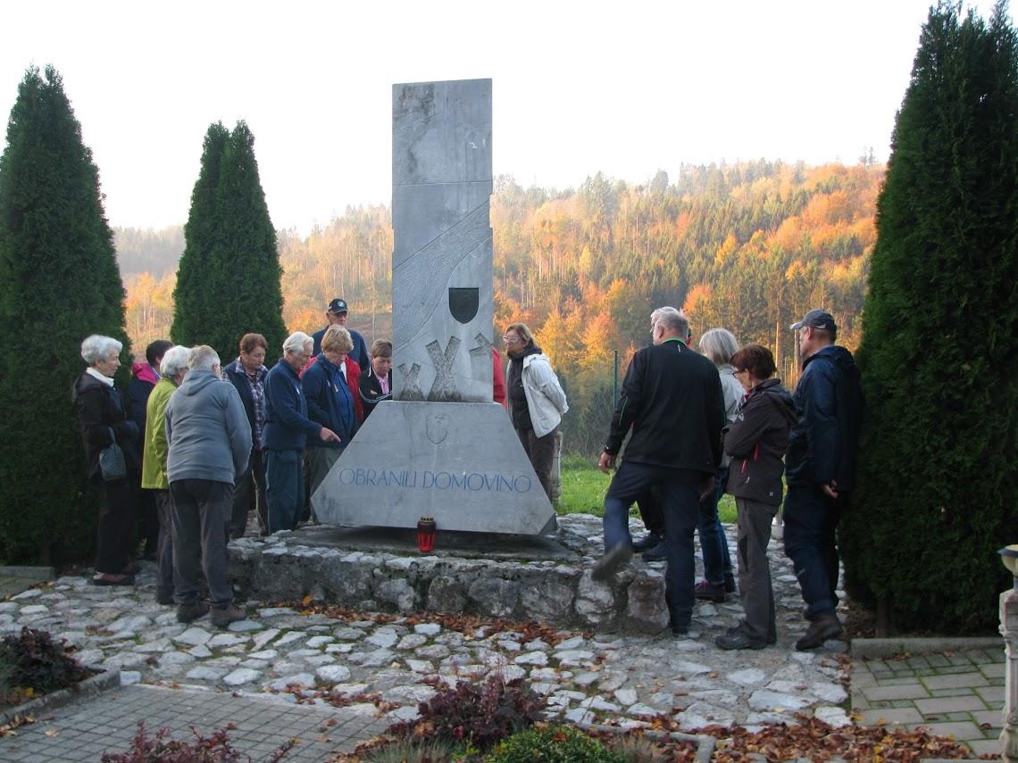 Avtocesto smo zapustili na izvozu Bič. V Gabru so nas že čakali udeleženci izleta z naše planinske skupine Novo mesto. Pohod smo pričeli na Medvedjeku pri spominskem obeležju iz vojne za Slovenijo. Poklonili smo se žrtvam, ogledali spomenik in muzejski tank, Danilo pa je napravil skupinsko fotografijo udeležencev za arhiv društva.