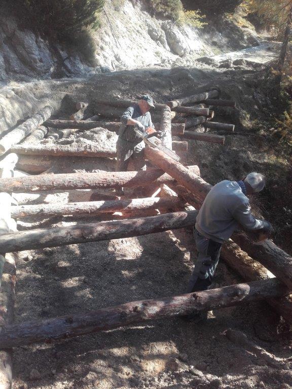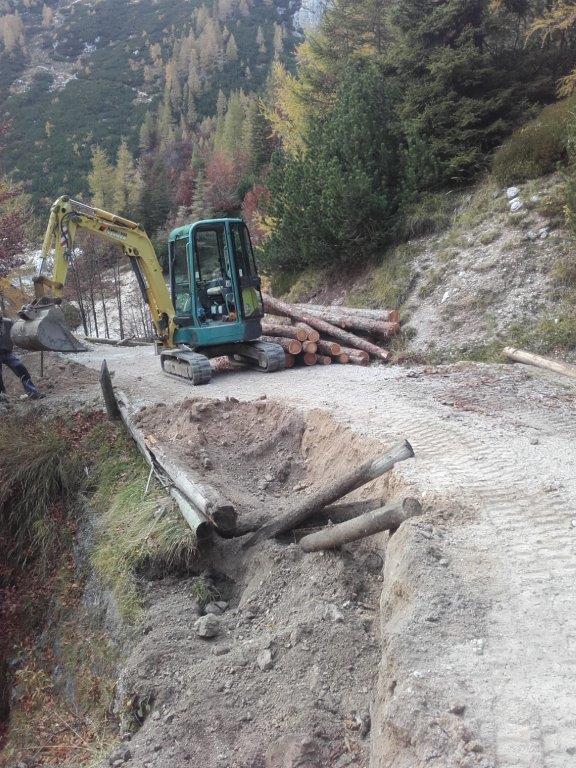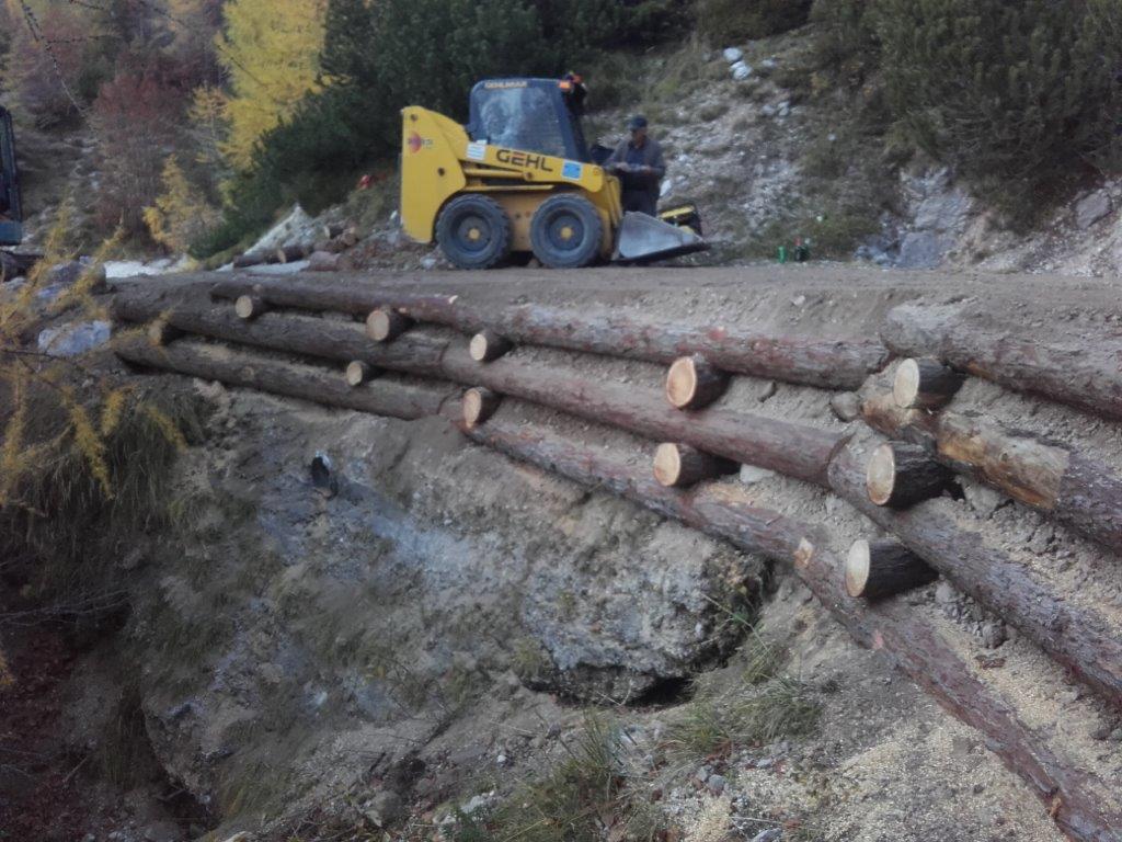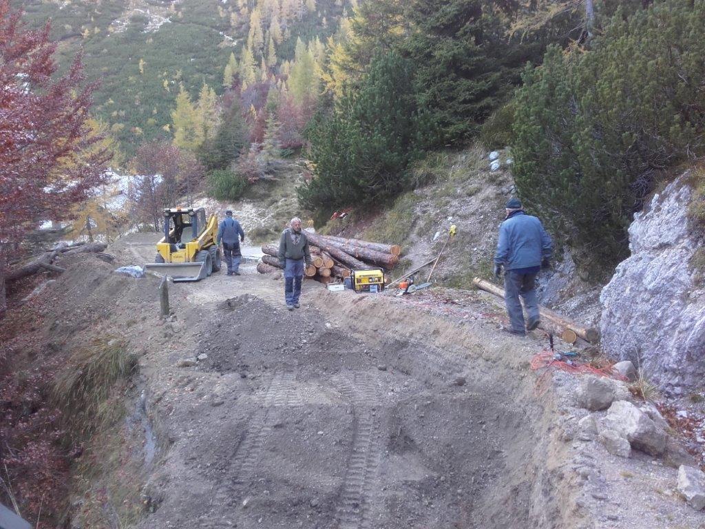 Iz prelaza Vršič je mimo Tičarjevega doma speljana dovozna cesta do Poštarskega doma v dolžini 500 m. Pot redno vzdržujemo. Brez urejene in vedno prevozne poti si obratovanje doma ne moremo predstavljati. V letošnjem letu je dotrajal podporni zid v dolžini 12 m. Zgrajen je bil pred več desetletji s telefonskimi drogovi. Za vgradnjo smo uporabili macesnove drogove. V cesto je bila vgrajena posebna povezana konstrukcija in nato z utrjena z grobim peščenim materialom. Zamenjali smo tudi več lesenih odtočnih jaškov z železnimi in vgradili nekaj novih. Površino ceste smo poravnali oz. odstranili grbine.