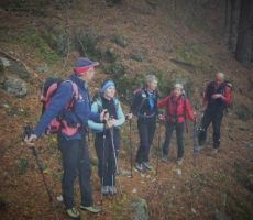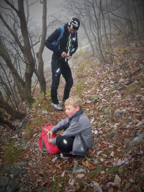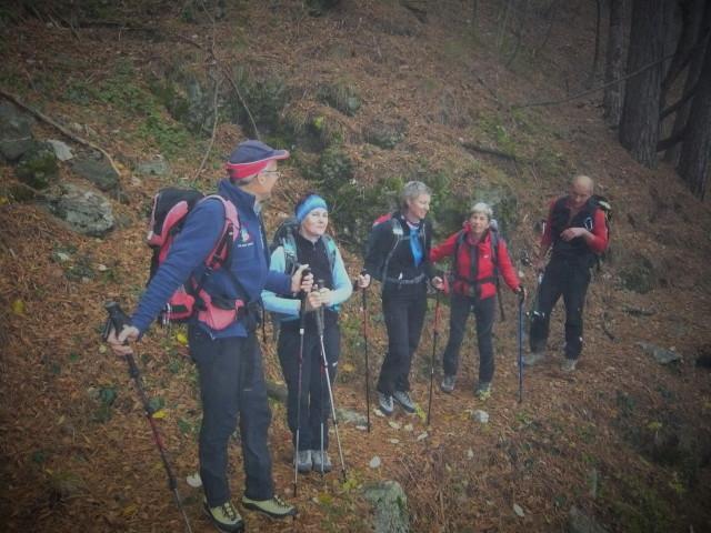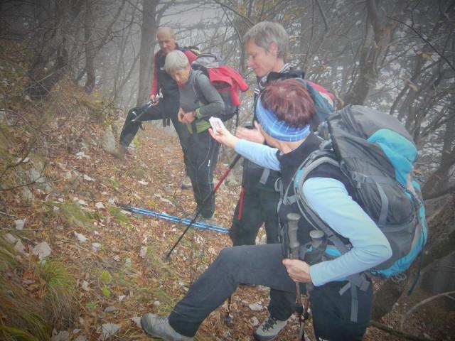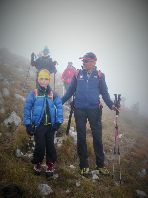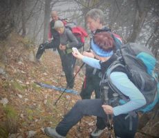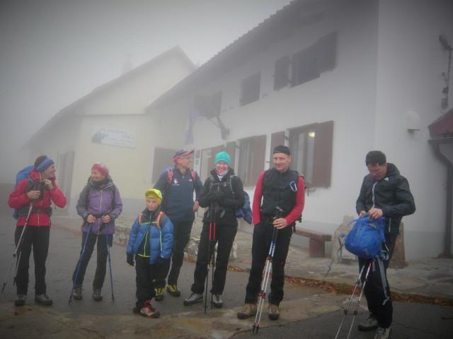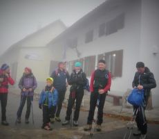 Po vremenski napovedi, naj bi deževalo po 13,00 h. Zato smo pot pričeli pri tunelih in izbrali srednječavesnko, ki nas je popeljala do Male gore in nato naprej na Kucelj. Pot poteka večinomo v gozdu in tu smo bili v zavetju ped rosnimi kapljami iz megle in pred vetrom. Le na Kuclju je vleklo in smo zato pohiteli in se vrnili po isti poti do razcepa na Malo goro. Od tu smo nadaljevali na Čaven. V koči so nas postregli z odličnimi štruklji in čajem, tako da smo bili pripravljeni za pot v dolino do naših vozil. Vsi udeleženci smo bili hitri in tudi rosenje iz megle nas ni prestrašilo. Z nami je bil devetletni Filip, ki nam je lepo popestil izlet s svojimi kako, kdaj, zakaj, kako visoko, je ferata....