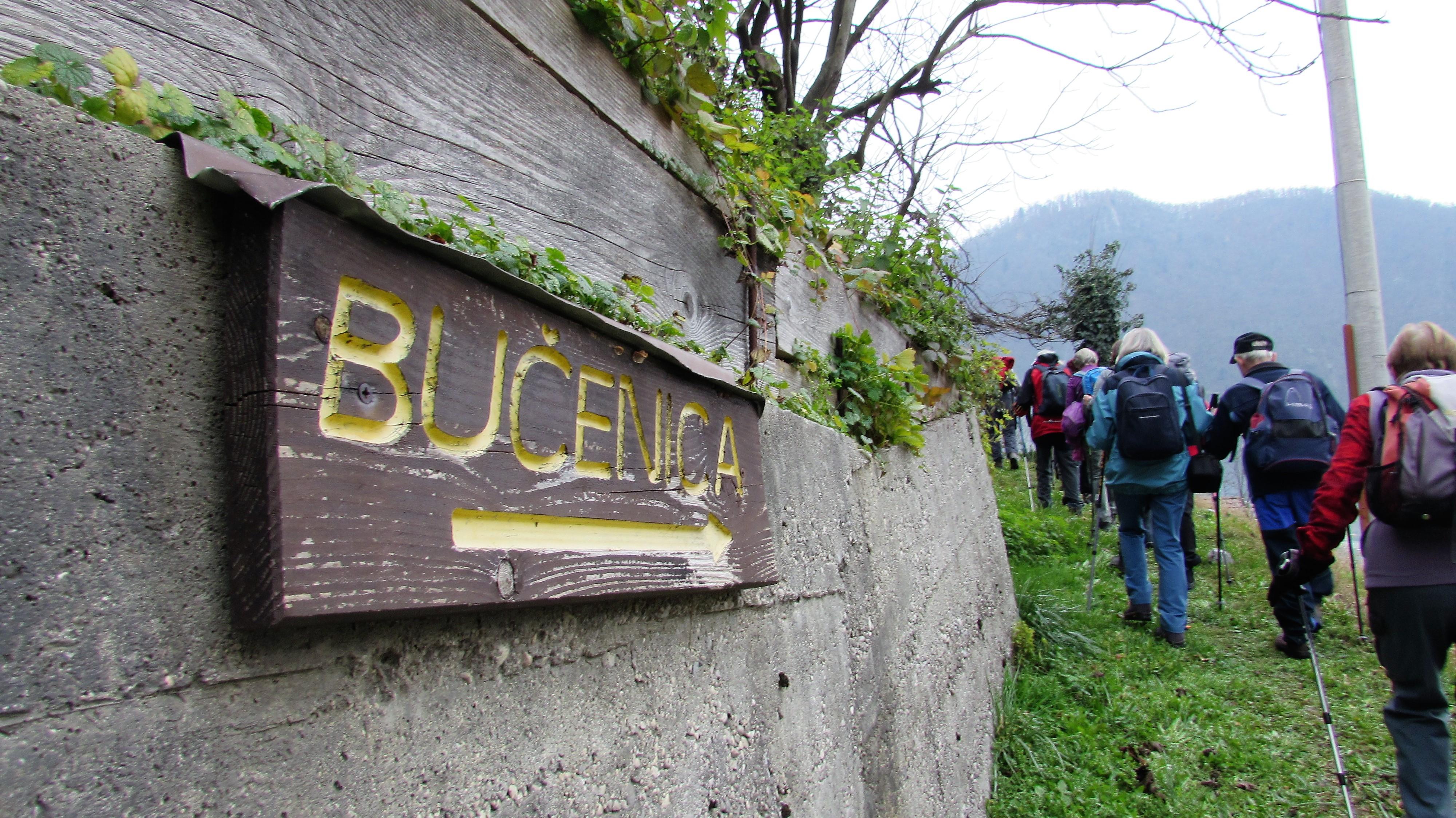 Po oglede vojaškega pokopališča v vasi Modrejce smo se povzpeli na hrib Bučenico. Z razgledne točke z vrha hriba je bil pogled na Tolmin, kot bi gledal razglednico kakšnega kraja. Vrhovi gora v ozadju so bili zasneženi. Pogled je segal tja do Bogatina in Krna ter tudi do visokega Kanina. Na drugi strani Tolminski Kuk, Migovec in Tolmninski Triglav so bili tudi rahlo zasneženi. Le Kobilja glava je bila zelena. Po razgledanju in malici smo nadaljevali na markirano Pot miru in dalje na Mengore, kjer so še vedno vidni številni vojaški položaji različnih namembnosti – opazovalnice, topniški položaji, za razsvetljevanje in tako naprej.