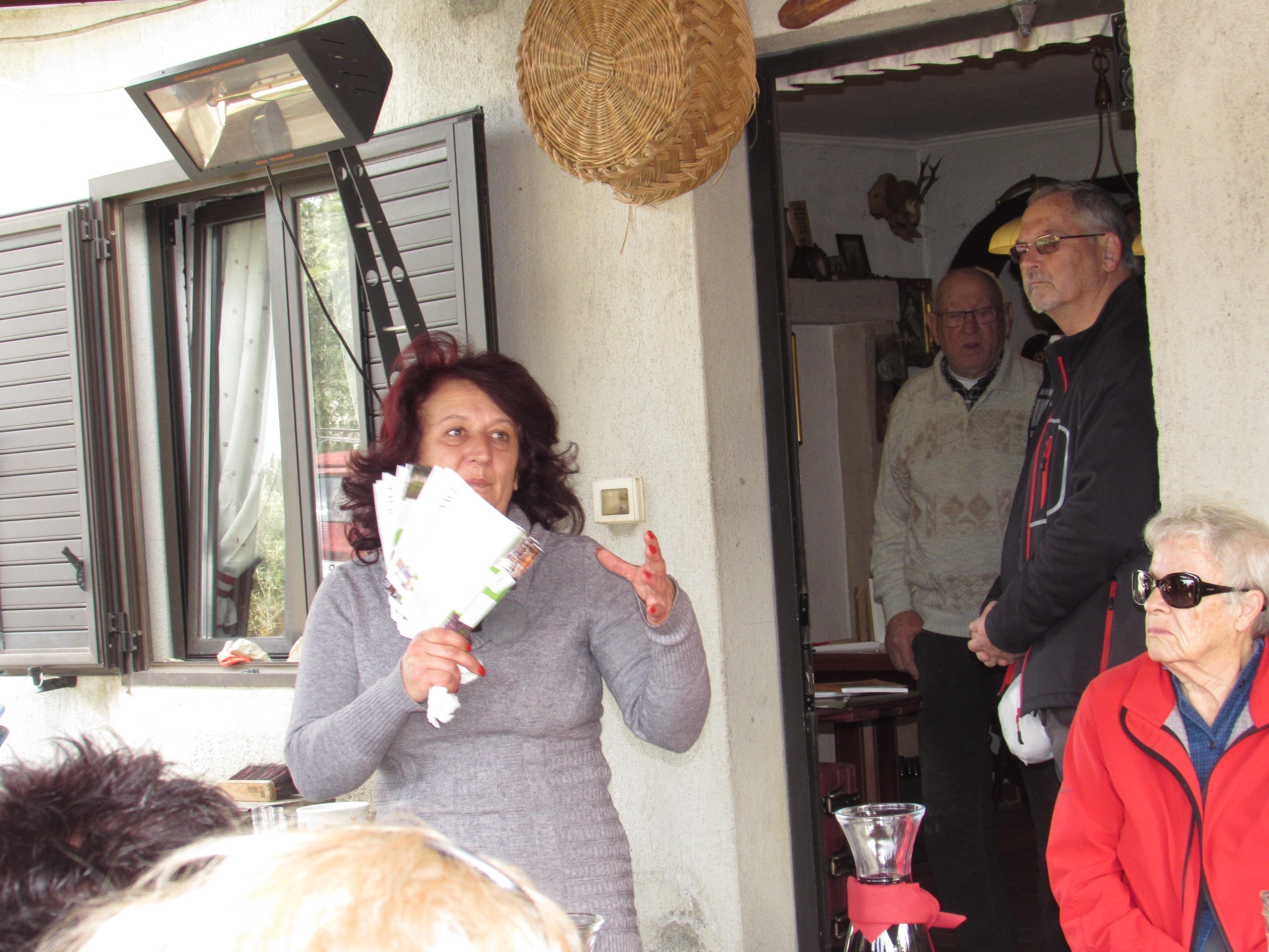 S polnim avtobusom smo se okoli 10. ure pripeljali do gostilne Sosič v Strunjanu, od koder smo se sprehodili med nasadi kakijev in artičok do domačije Knez, s predstavitvijo kraja in kmetije, ki se ukvarja tudi z apartmajskim turizmom ter naravno kozmetiko iz doma pridelanega sadja in zelišč.