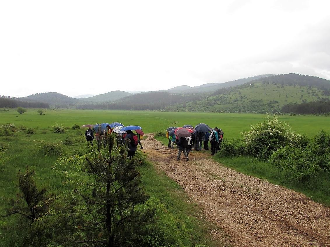 Oh ta dež, pa ne tudi danes, ko se planinci odpravljamo na izlet! Z avtobusom se odpeljemo na Notranjsko, v deželo kraških jam, vrtač in mnogoterih jezer, v Krajinski park Pivška presihajoča jezera.