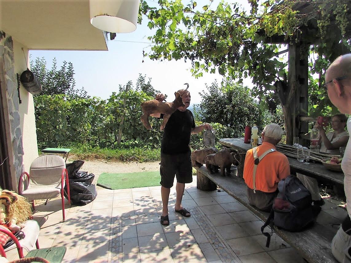 Na glavni avtobusni postaji nas je že čakal posebni avtobus. LPP šofer Jure nas je povabil v avtobus. Vodnik Stanko je ugotovil, da so vsi prijavljeni prisotni. Dobro razpoloženi smo zapustil avtobusno postajo. Vremenarji so napovedali lep sončen dan, kar je zelo zaželeno za planinski izlet V Ivančni Gorici zapustimo avtocesto in se po lokalni cesti pripeljemo do vasi Krtina. V gostišču Vavtar popijemo jutranjo kavo. Tu se nam pridruži vodnik Franci Škarja, ki nas bo vodil po Šentloverskem krogu. Pohod smo pričeli po obrobju kraja Male Loke, prijetno in varno smo se počutili v gozdu. Po stezi smo se približali poti, ki vodi v vas Čatež. Kar nekaj časa smo hodili z manjšim ali daljšim odmikom od ceste in potem na robu gozda zagledamo vas Čatež. Pohod smo nadaljevali v smeri Dolgih Njiv in Mačjega dola. Pohod smo nadaljevali po gozdni senci. Ob robu gozda smo opazovali razgibano Šentlovrersko pokrajino. Primskovo, Žubino, Veliki Gaber in Medvedjek. V zaselku Mačjega dola oziroma v nekakšnem vikendu nas je povabi domačin na pijačo in sadne dobrote. Predstavil se je kot bivši novinar in vojaškim činom major. Je pa tudi slikar, dober poznavalec pokrajine in ima lep razgled z lokacije na kateri prebiva oziroma uživa. Zapustili smo prijaznega domačina in se po stezi in malo tudi po cesti spustili v vas Vrhovo. V vasi Vrhovo smo opravili ogled izdelave Medveda iz hrastovega lesa oziroma debla. Medvede izdeluje z motorno žago. Na pohodu smo opazovali razne živali : srne, veverice, ptice ter obilno letino sadja v razgibanih vaseh. Po ogledu hrastovih Medvedov smo se odpeljali v Trebnje, v hotel Galaksija , kjer smo zaključili naš izlet. Spoznali smo del Dolenjske pokrajine. Za svoje zdravje smo poskrbeli s hojo po gozdnih stezicah. Danilo je opravil meritve. Prehodili smo 10 km in 300m v času 3 ur in 20 minut. V hotelu Galaksije so poskrbeli za nas, da smo se v druženju in zaključku izleta zadovoljni vrnili v Ljubljano. Zapisal : Stanko Jaki Foto: Danilo Cej