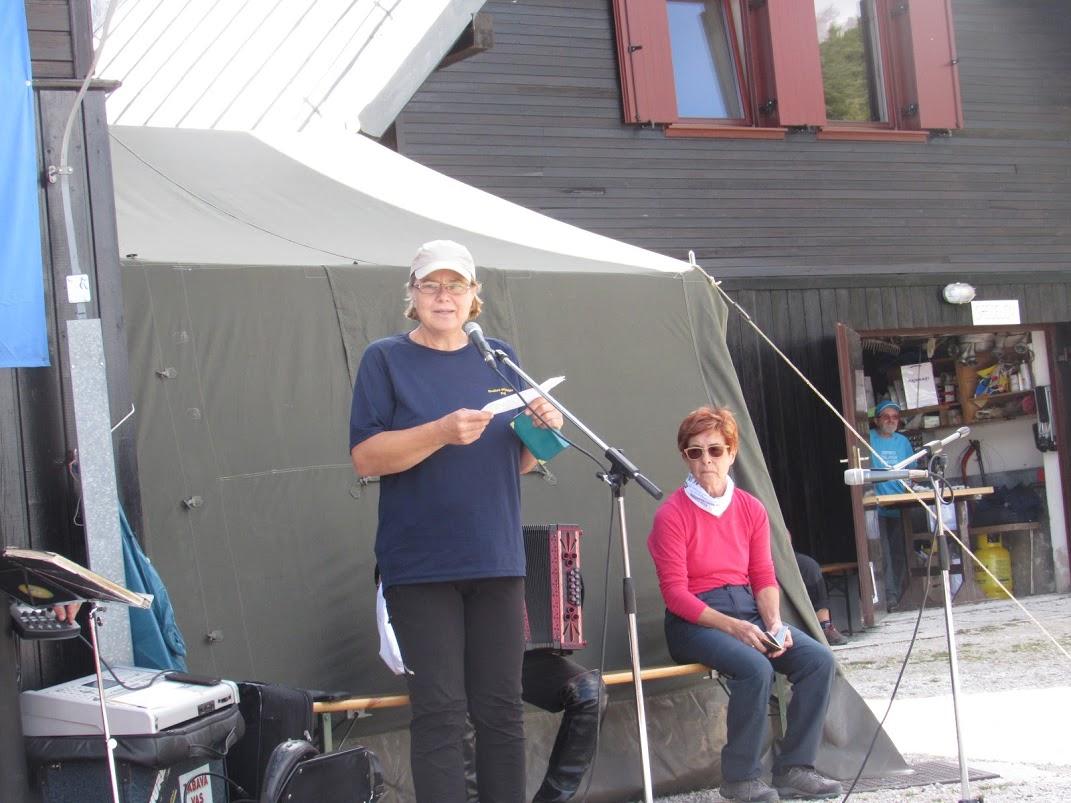 Pohod od skakalnice do koče v Tamarju je za nami. Z avtobusi se zapeljemo do vrha prelaza in nadaljujemo do Poštarskega doma, kjer je že vse pripravljeno za srečanje. Slavnostni govorniki so kratki in jedrnati. Vzdušje je sproščeno in nikomur od udeležencev se ne mudi domov.