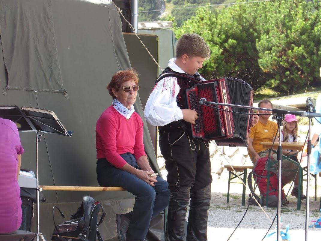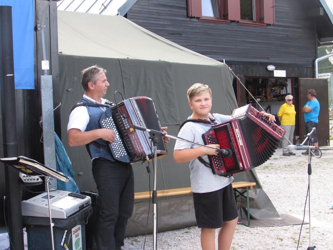 Prekrasno sončno vreme je bilo kot naročeno. Druženje ob okusnem golažu se nadaljuje v prijetnih zvokih harmonike Anžeja Šarca in Janeza Kogovška. Oba sta stara znanca naših minulih srečanj. Še zlasti moramo izpostaviti mladega Anžeja, ki je iz leta v leto boljši in žanje znatne uspehe na različnih tekmovanjih mladih harmonikarjev.