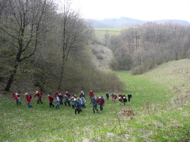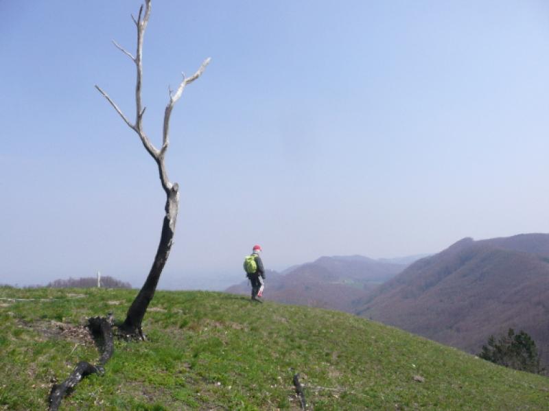 V nekoliko hladnem in vetrovnem vremenu smo se odpravili naprej proti Velikemu špičku, 686 m. Nekateri so ugibali, če ni morda sonce šibkejše zaradi vulkanskega prahu z Islandije, ki je prikoval na tla letala po vsej Evropi. Vendar smo se ogreli s hojo, sčasoma pa se je tudi oblačno nebo razjasnilo in naredil se je lep pomladni dan. Med potjo smo lahko opazovali spomladansko prebujanje narave, s številnim cvetjem, od trobentic do velikonočnice.