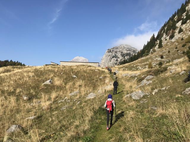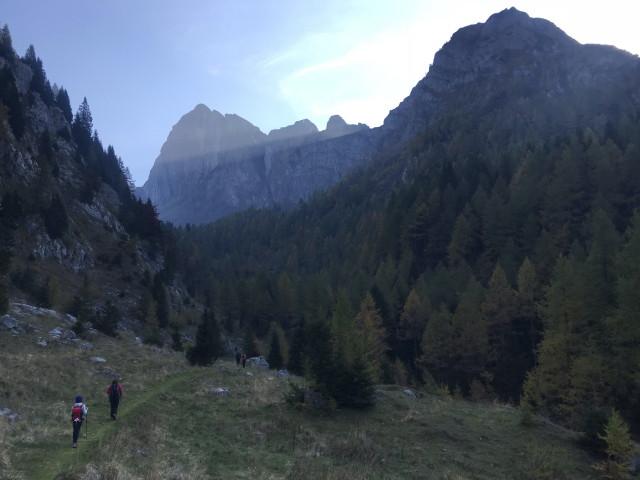 Iz Vrtojbe smo se odpeljali proti Tolmeču in naprej proti Avstriji (Plockenpass). Ustavili smo se v vasi Timau, kjer smo pustili en avto, z dvemi nadaljevali vožnjo še kaka 2 km do parkirišča. Tu se na desni začne steza z oznako 402a. Po gozdu smo prispeli do prelepe planine Palgrande di Sopra, nato pa po odprtem svetu do prostranega mejnega prevala Paso di Pal Grande (1760 m). Na desni se dviga odsekana stena Crete di Timau. Po strmem pobočju smo se povzpeli do škrbine pod vrhom Cima Avostanis, kjer smo pogledali na vzhod – pod nami je bilo jezerce Lago Avostanis in slikovita planina Casera Pramosio Alta. Od tu smo prečili proti jugu na naslednjo škrbino, nato pa po lažjem skalovju na vrh. Sledila je malica in razgledovanje. Vračali smo se v dveh skupinah – eni so krenili proti zahodu po strmi nemarkirani stezi navzdol do poti, ki pelje z Gamspitza, drugi pa smo se obrnili proti vzhodu in se spustili do jezerca Avostanis in do planine Casera Pramosio Alta. Mimo koče in parkirišča smo po makadamski poti hodili par sto metrov, nato pa našli pot 401 (Sentiero dei Pastori), ki nas je skozi gozd, poln starih bukev, v strmem spustu pripeljala v Timau, kjer nas je že čakala hitrejša skupina.
