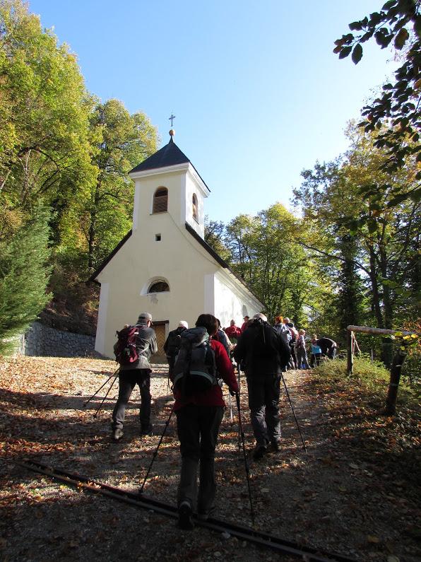 Pot smo nadaljevali skozi jesenski gozd. Slikovitost in polnost jesenskih barv je bila neverjetna. Tudi vreme nam je bilo naklonjeno. Prijetno sonce, brezveterje in beseda je tekla kot za stavo. Poznalo se je tudi na koraku, saj se je nekaterim kar mudilo. Del skupine je bil zaostajal in tako je šlo vse do daljšega postanka na Smuku. Postanek smo izkoristili za klepet in osvežitev v lovski koči. In tudi za uživanje na soncu, seveda. Cerkev sv. Lovrenca je bila zaprta. Tako žal ni bilo priložnosti za ogled notranjosti. Mogoče kdaj drugič.