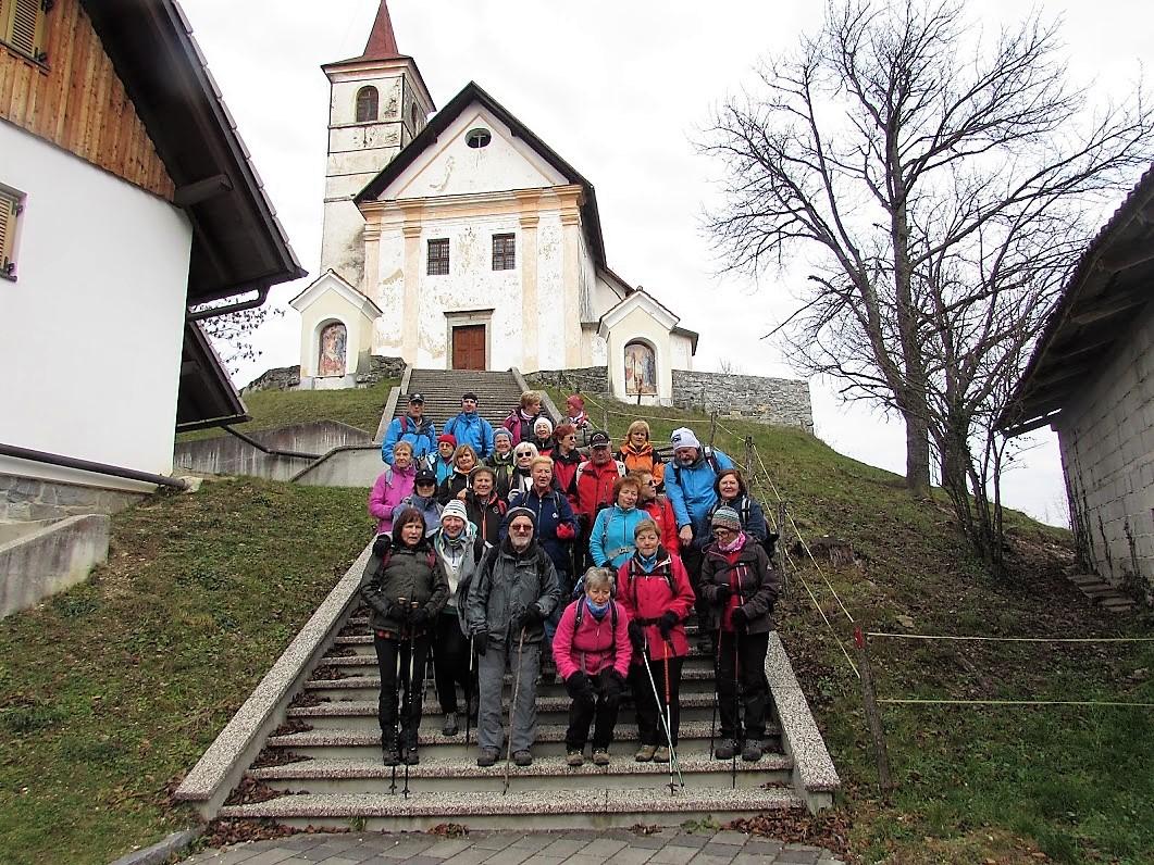 Skupina planincev je pot nadaljevala peš skozi vas. Zaspana in valovita pokrajina se je lepo odpirala in tudi pogled na kamniško-savinjsko pogorje je bil čedalje lepši. Pot smo nadaljevali skozi gozd v smeri proti cerkvi Sv. Mohorja. Pot je bila kot preproga, le da je preproga bila iz suhega listja.